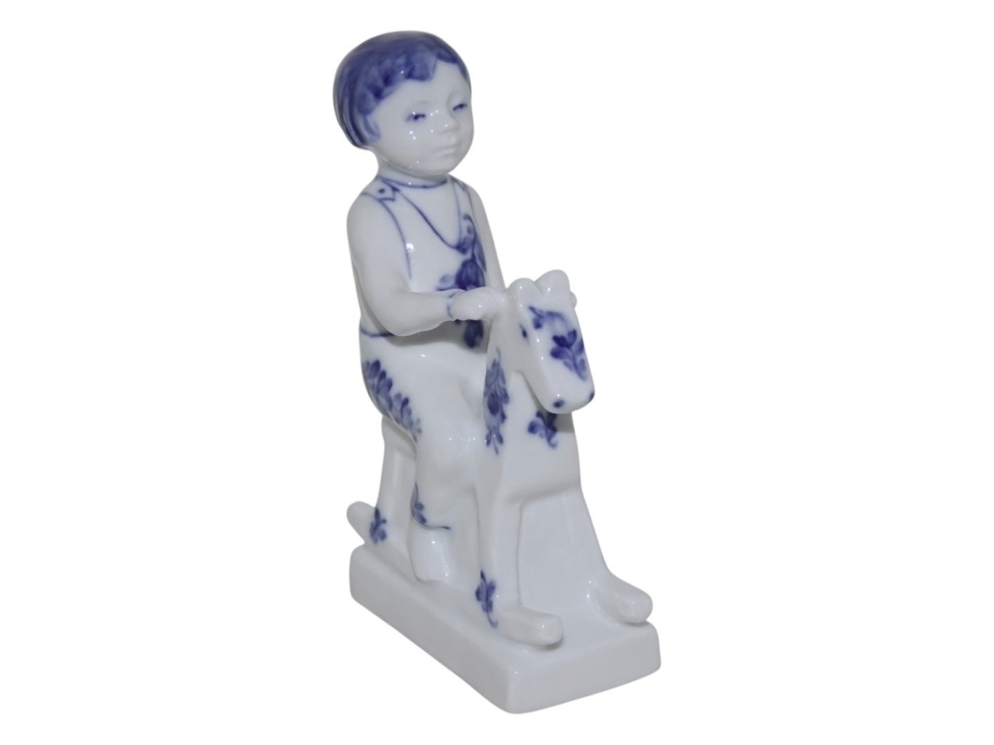 Royal Copenhagen Blå Blomst, sjælden figur af dreng på gyngehest.