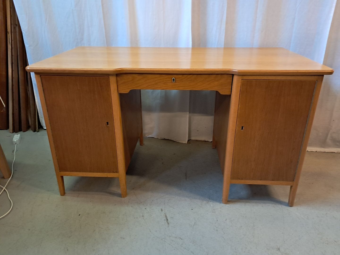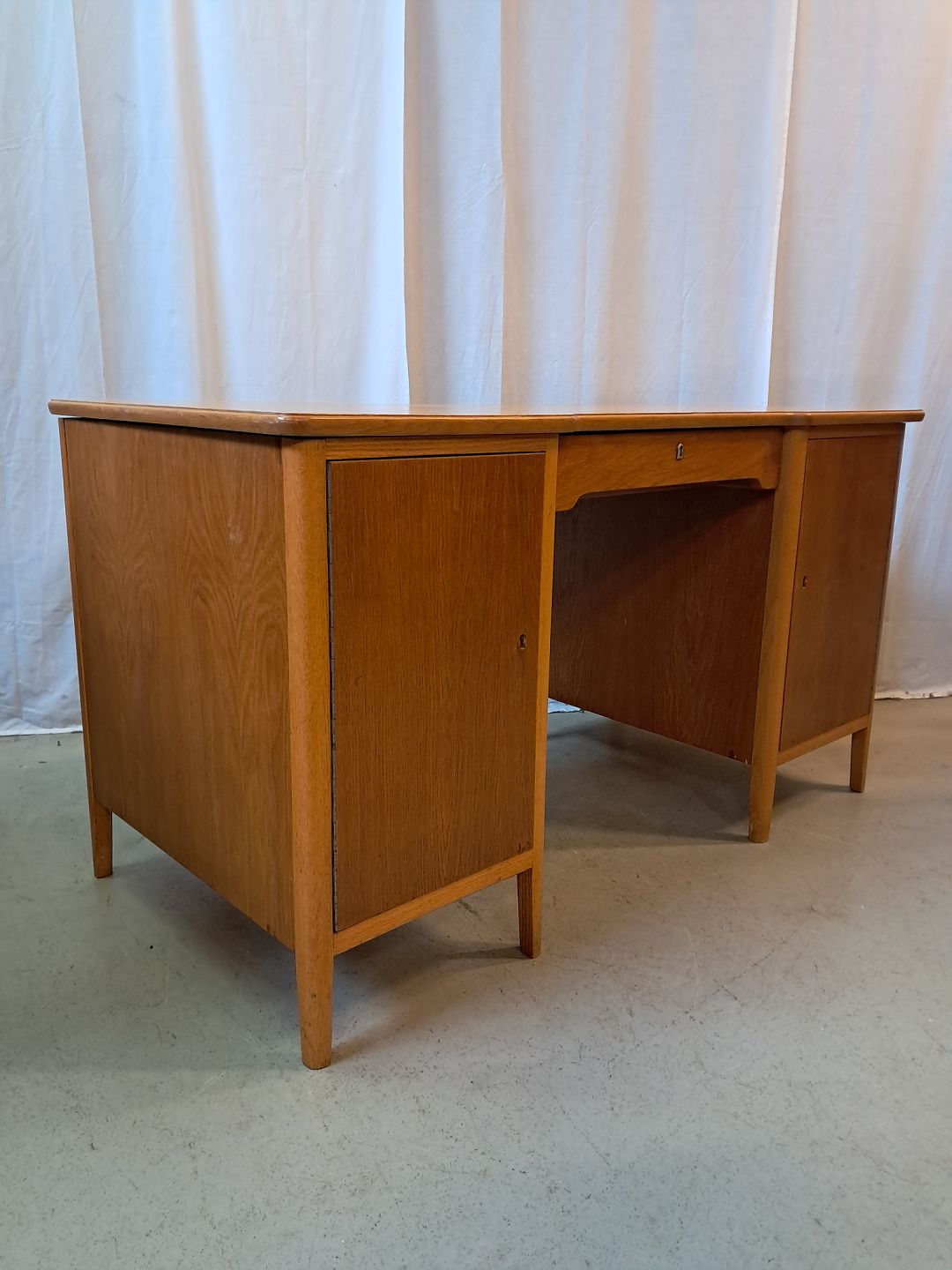 Skrivebord i fineret egetræ, fra 1950erne.