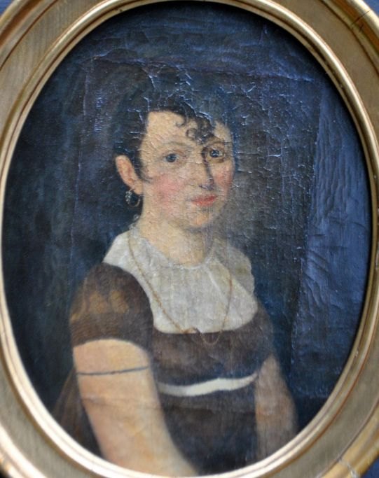 Danish Empire portrait artist (19th century): Portrait of a young woman. Oval. Oil on canvas. 56 x 44 cm.