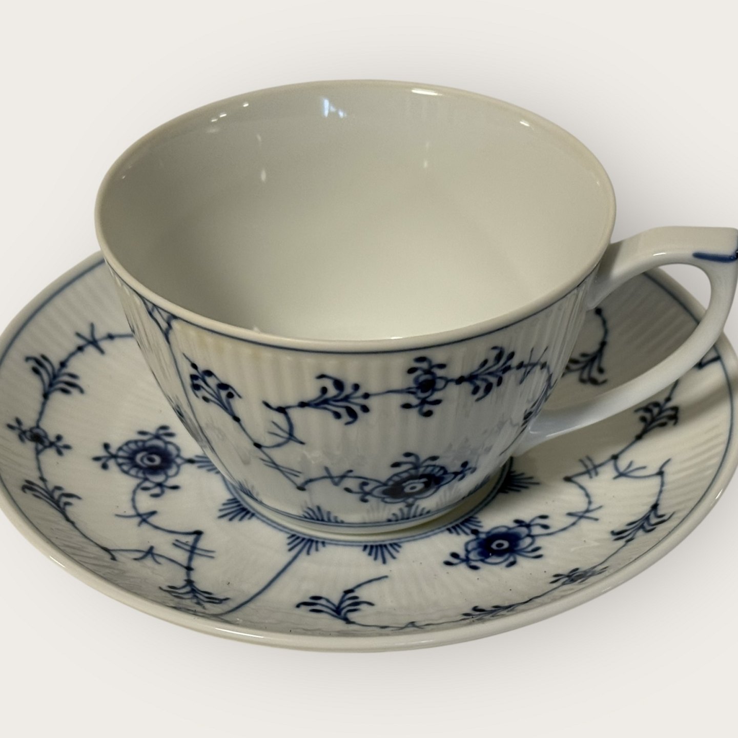 | Royal Copenhagen, Musselmalet kop, riflet, #087, kop diameter 10cm, højde 6,5cm *1.sortering i perfekt stand og i original æske*