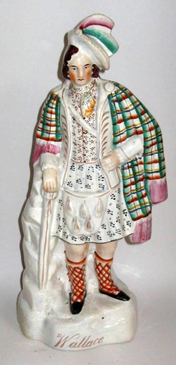 Staffordshire figur, 19. årh. England. Fajance. Polykrom dekoration forestillende den skotske oprørsleder William Wallance, der rejste Skotland mod englænderne i 1297. H.: 39 cm.