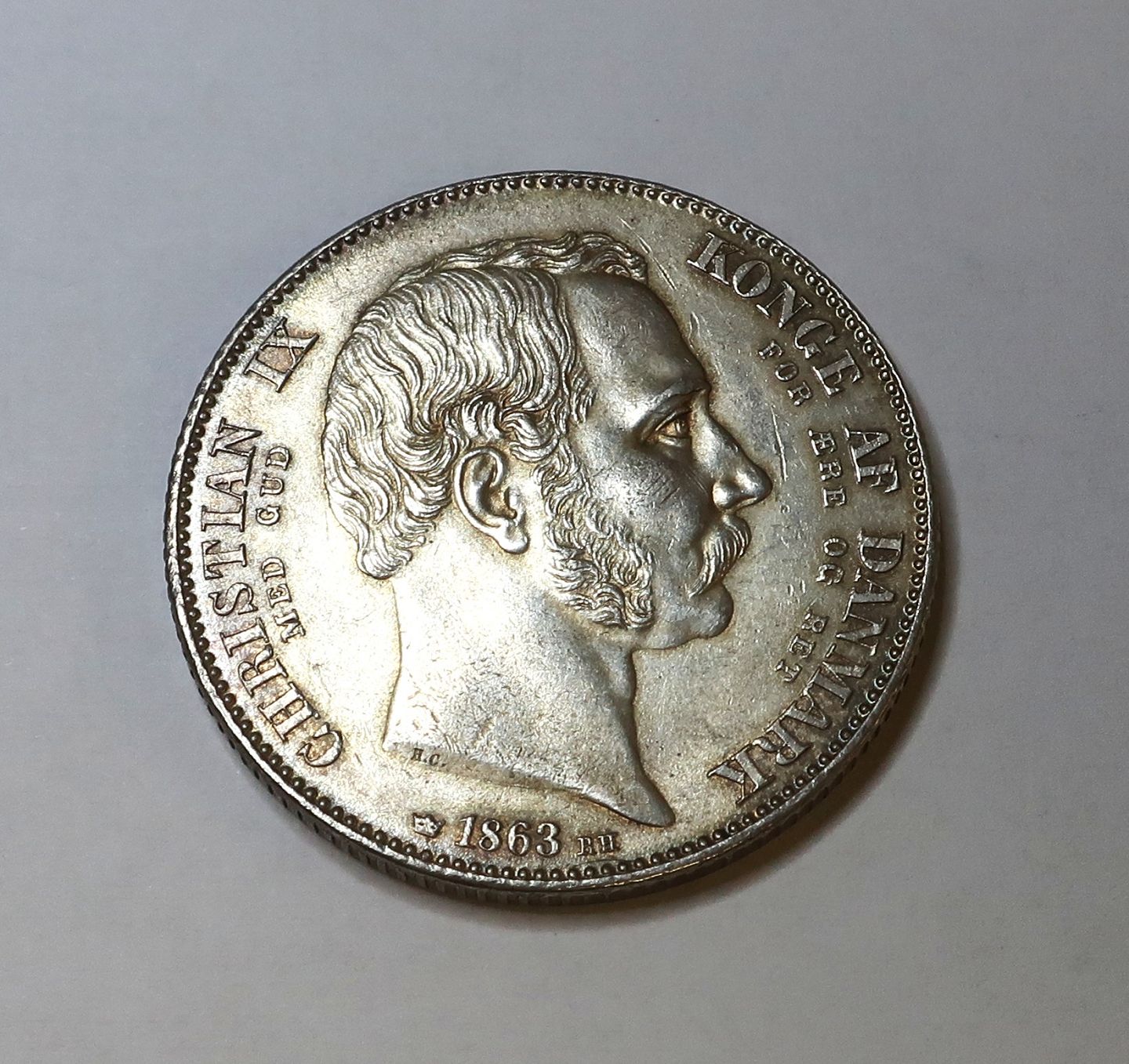 Danmark. Christian lX. Tronskiftespecie 1863.
