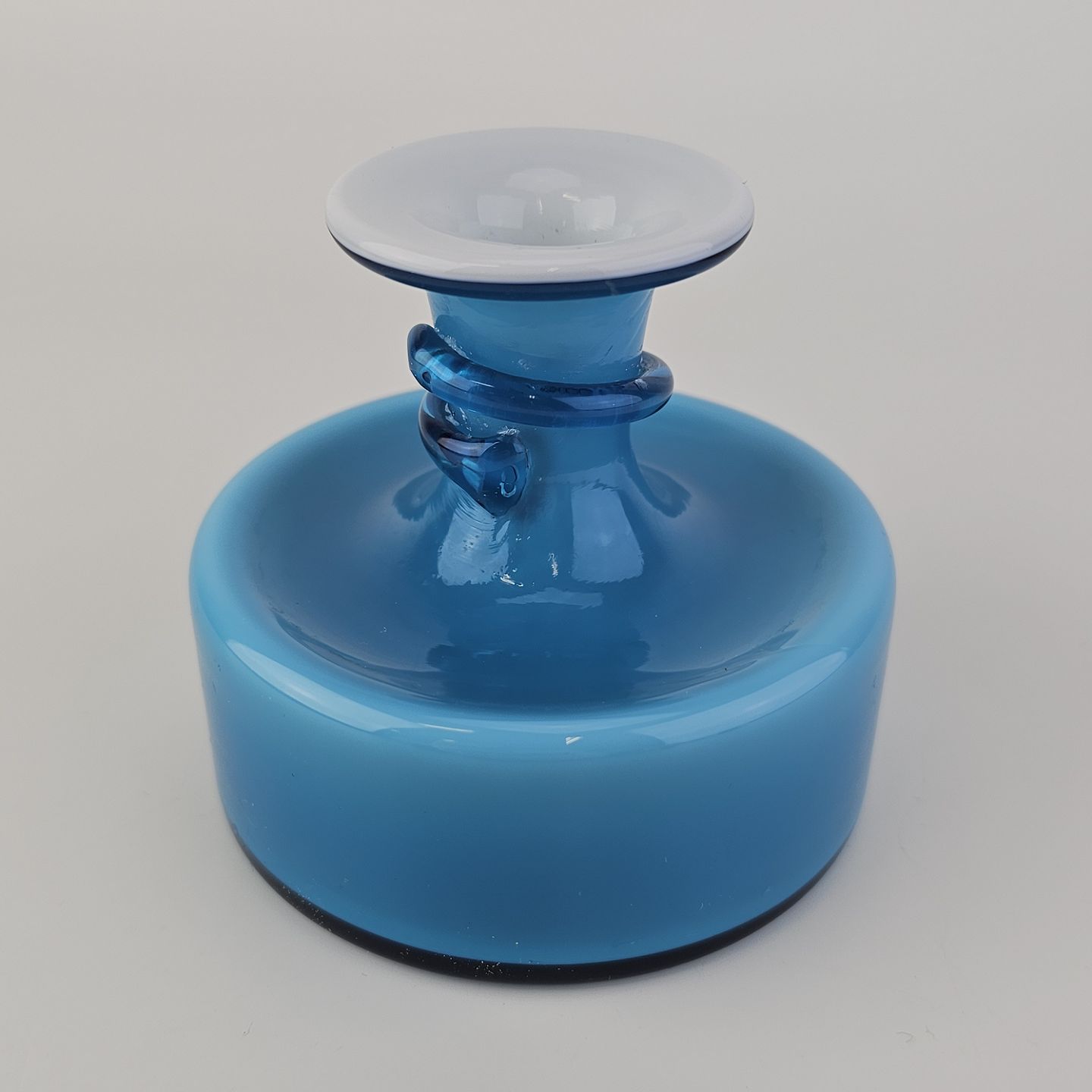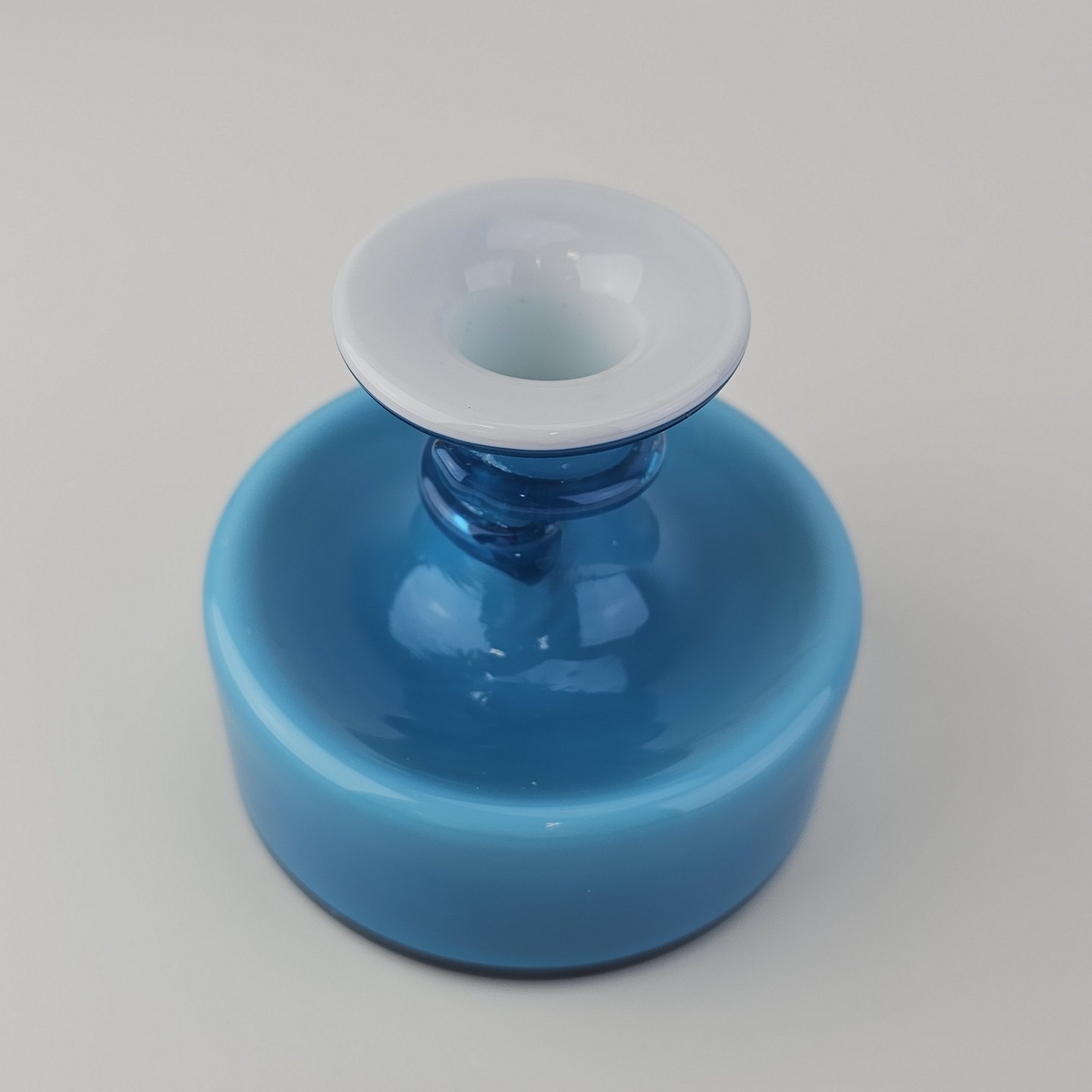 Napoli glasvase i blåt opalglas med hvid inderside