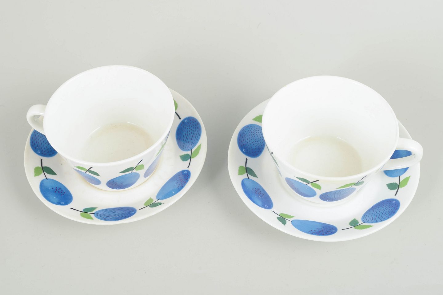 Stig Lindberg for Gustavsberg, to "Prunus" tekopper med matchende underkopper.