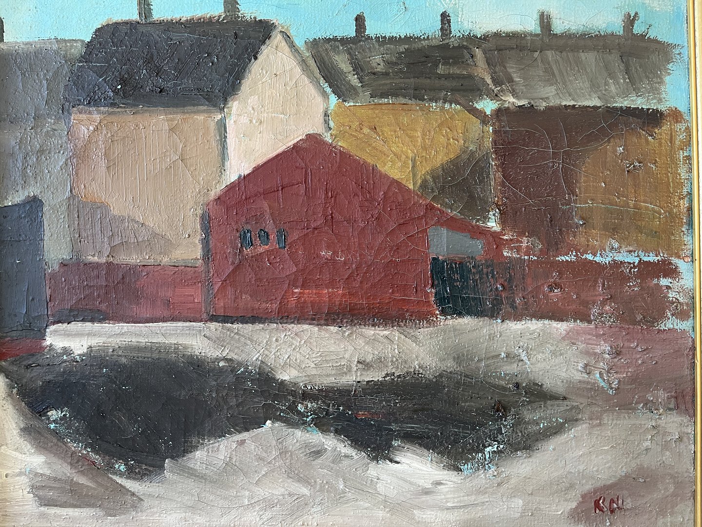 Maleri af Kurt Nedergaard - Huse i tusmørke 1962.