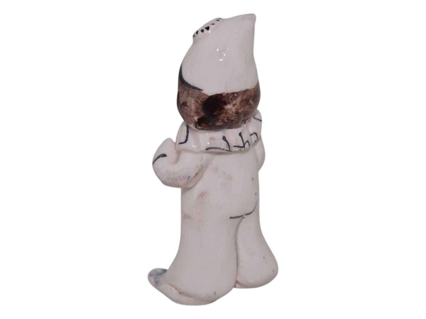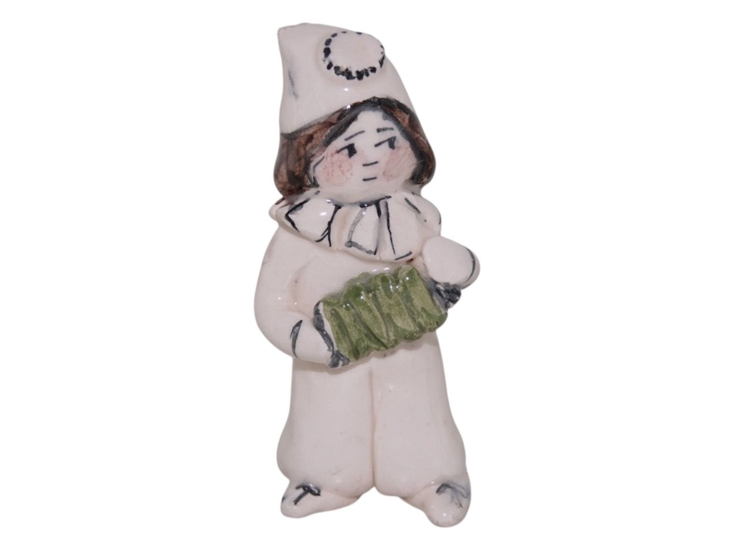Doreen Middelboe keramik, lille figur af pige i harlekin tøj og med harmonika.
