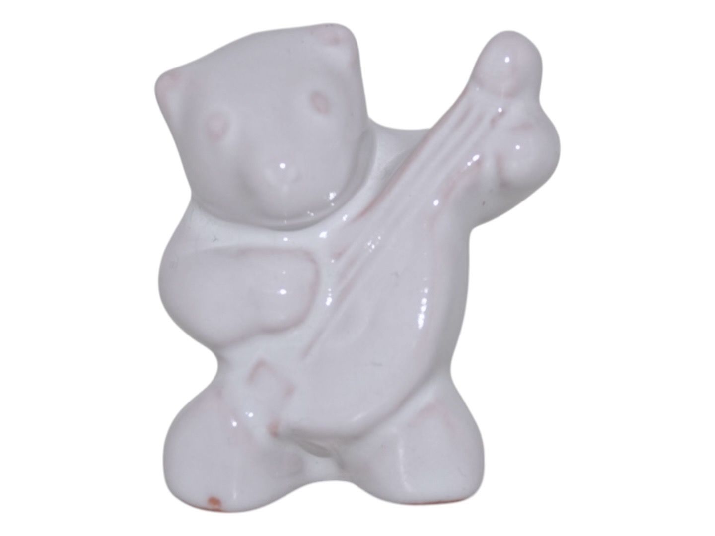 Hjorth keramik miniature figur, hvid bjørneunge med mandolin.
