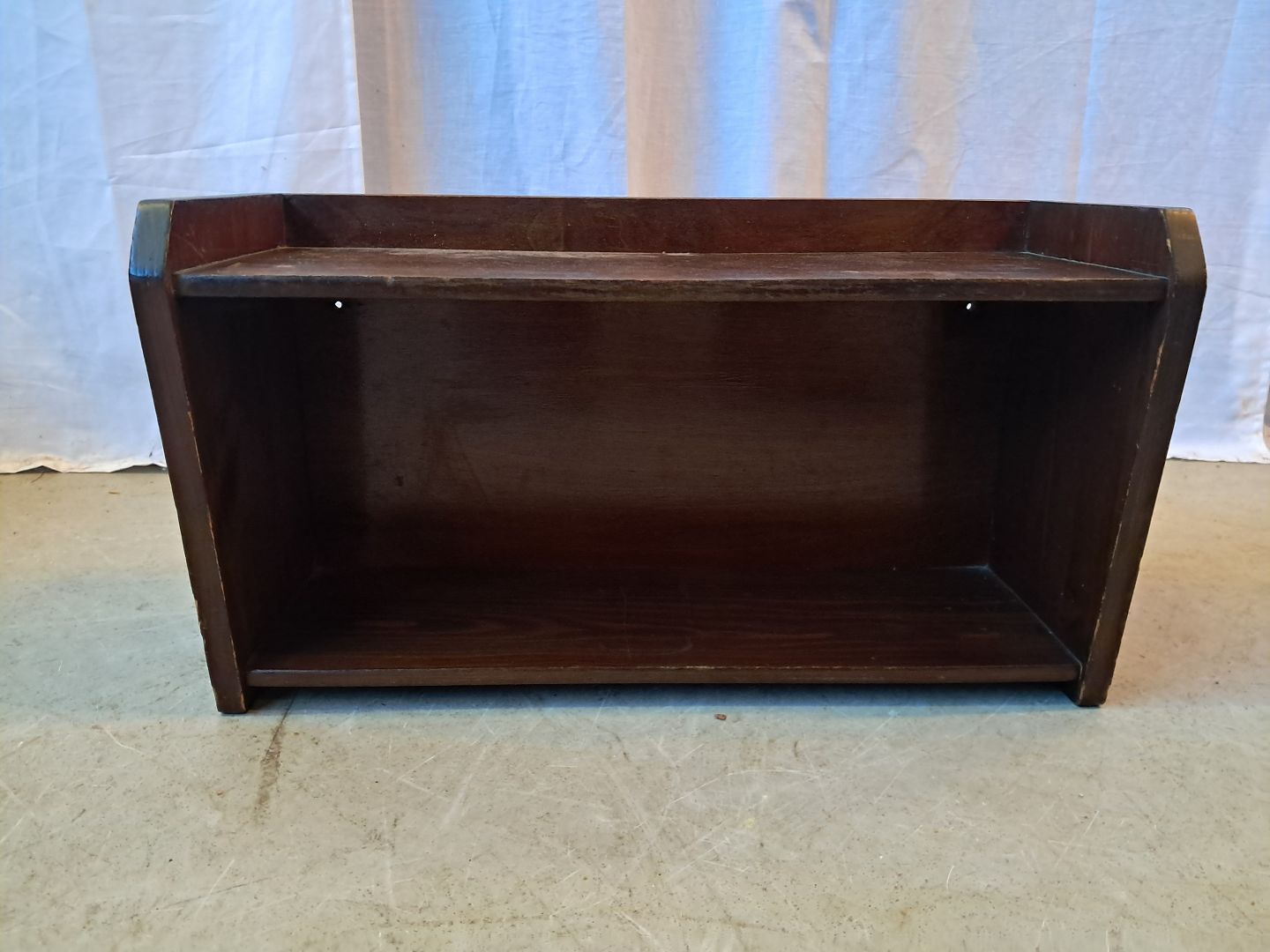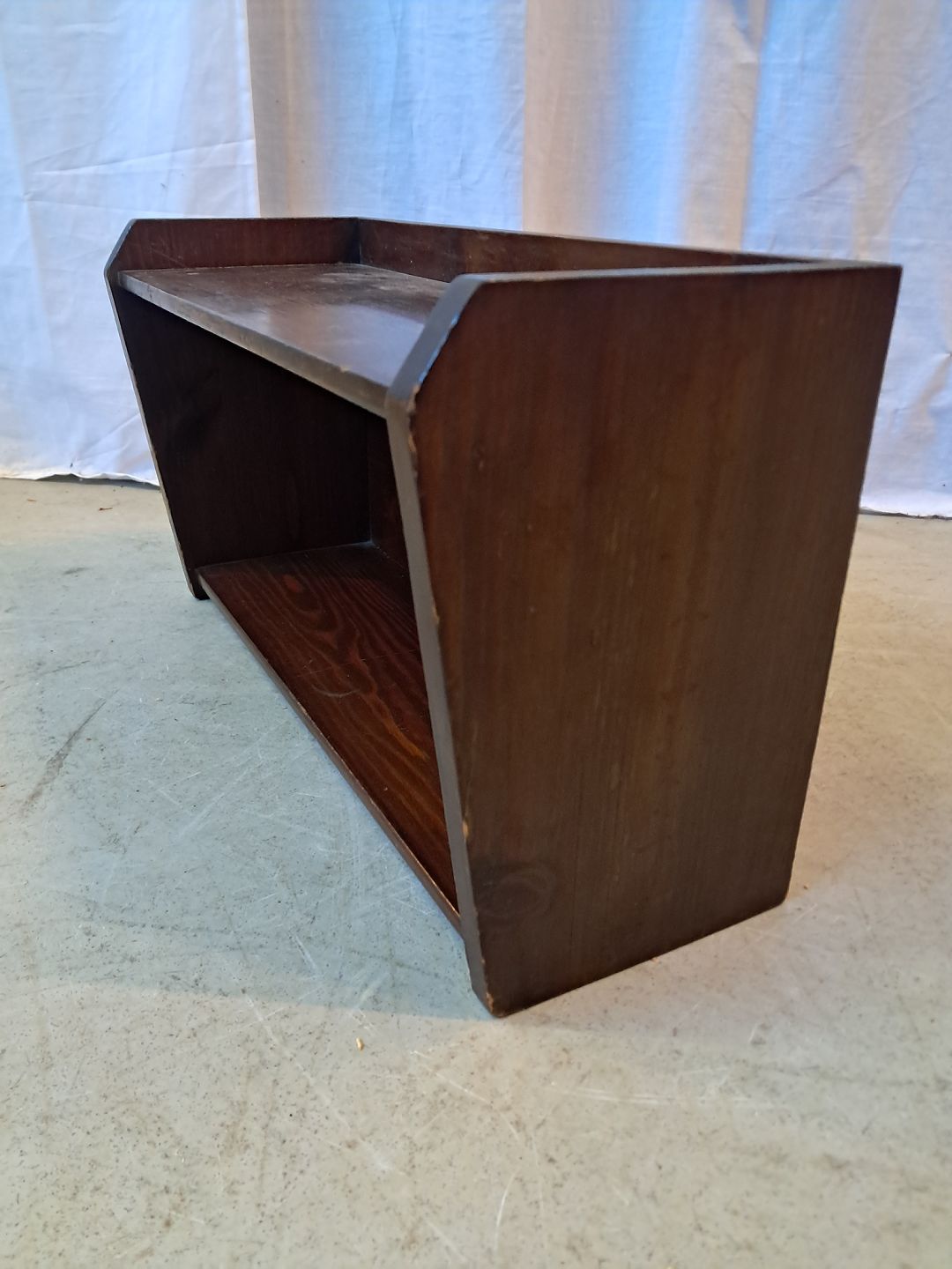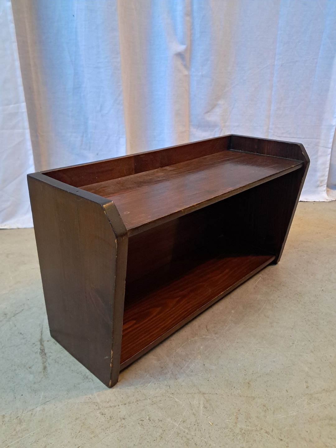 Lille vægreol i bejdset massivt fyrretræ, fra 1950erne.