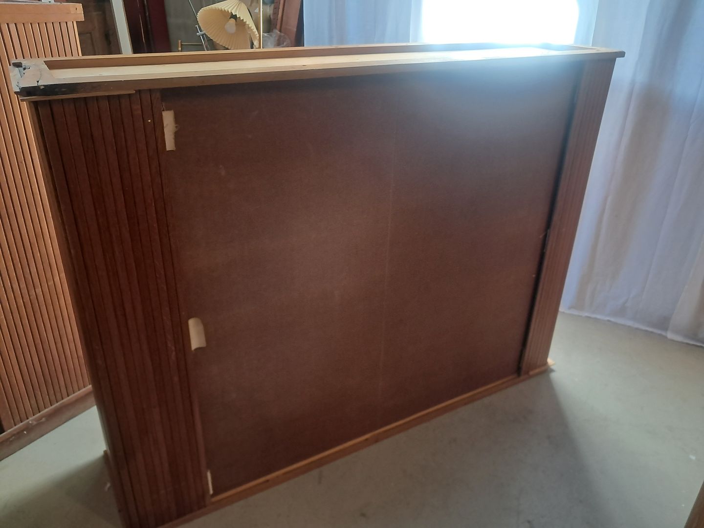 Jalousiskab i fineret egetræ, fra 1950erne.
