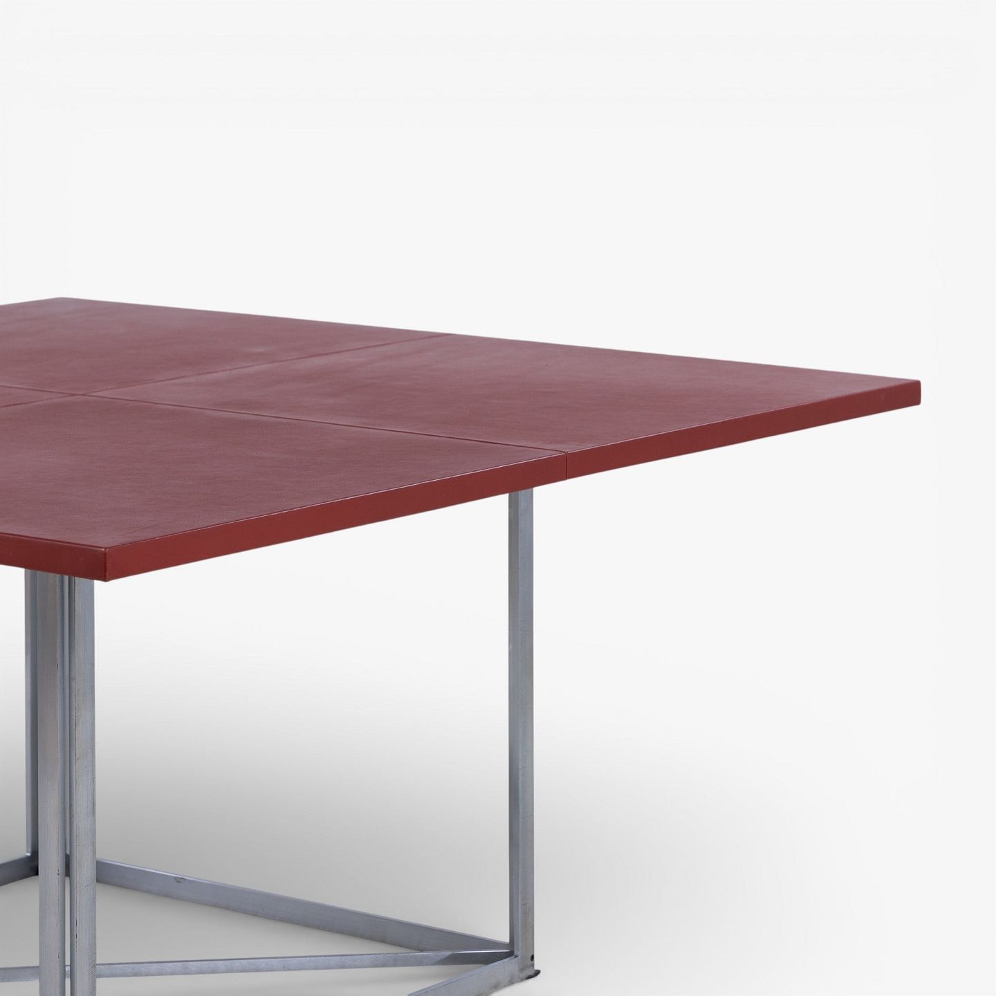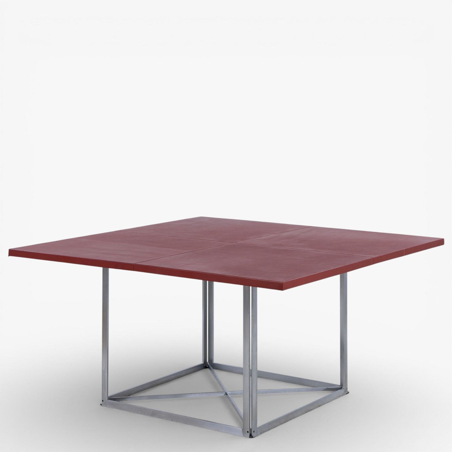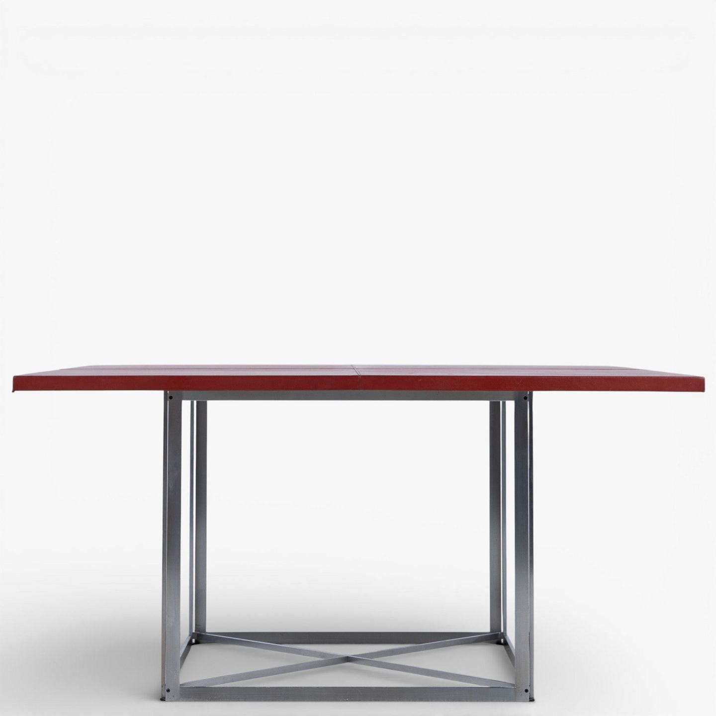 PK 40 - Kvadratisk spisebord med plade i rødt skind på stel i stål. Mærket fra producent.
