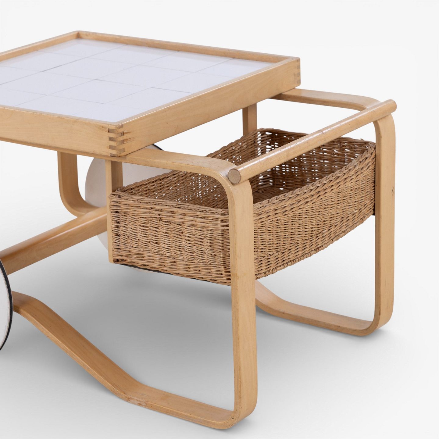 'Tea Trolley 900' - Serveringsvogn i patineret birk med hvide kakler.