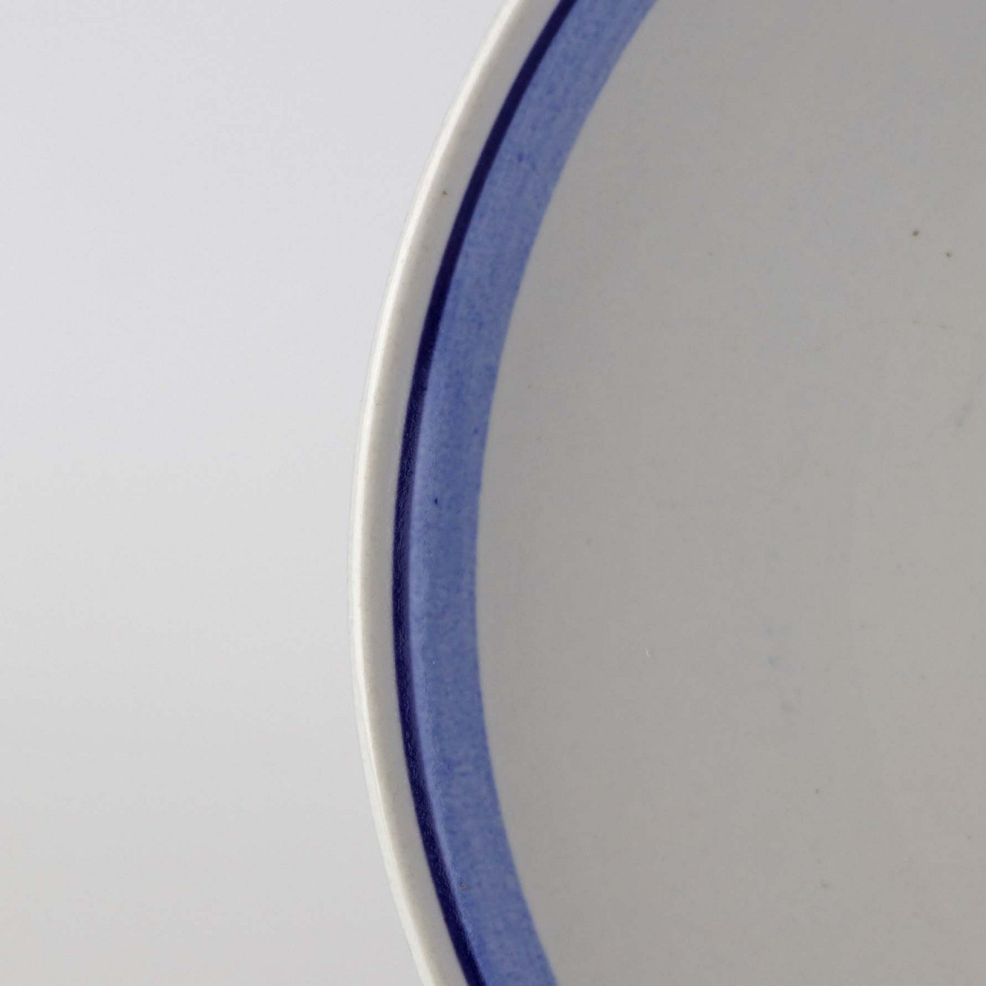 Fajancestel i stelform CA med dekoration af abstrakt motiv i blå og lyseblå på en råhvid baggrund.