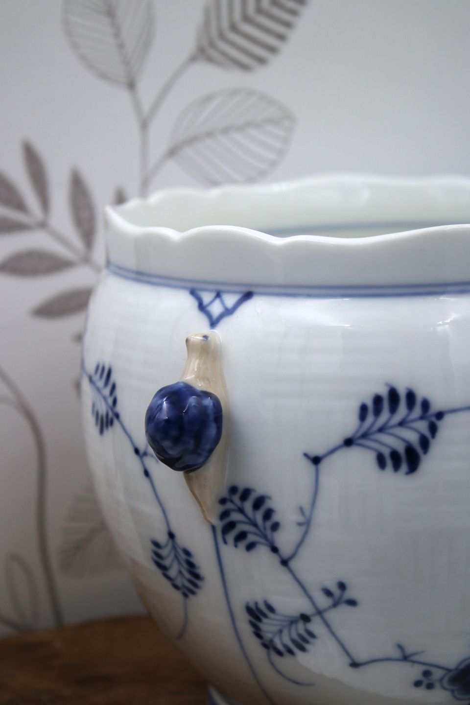 Sjælden Musselmalet Riflet blomsterpotteskjuler fra Royal Copenhagen.