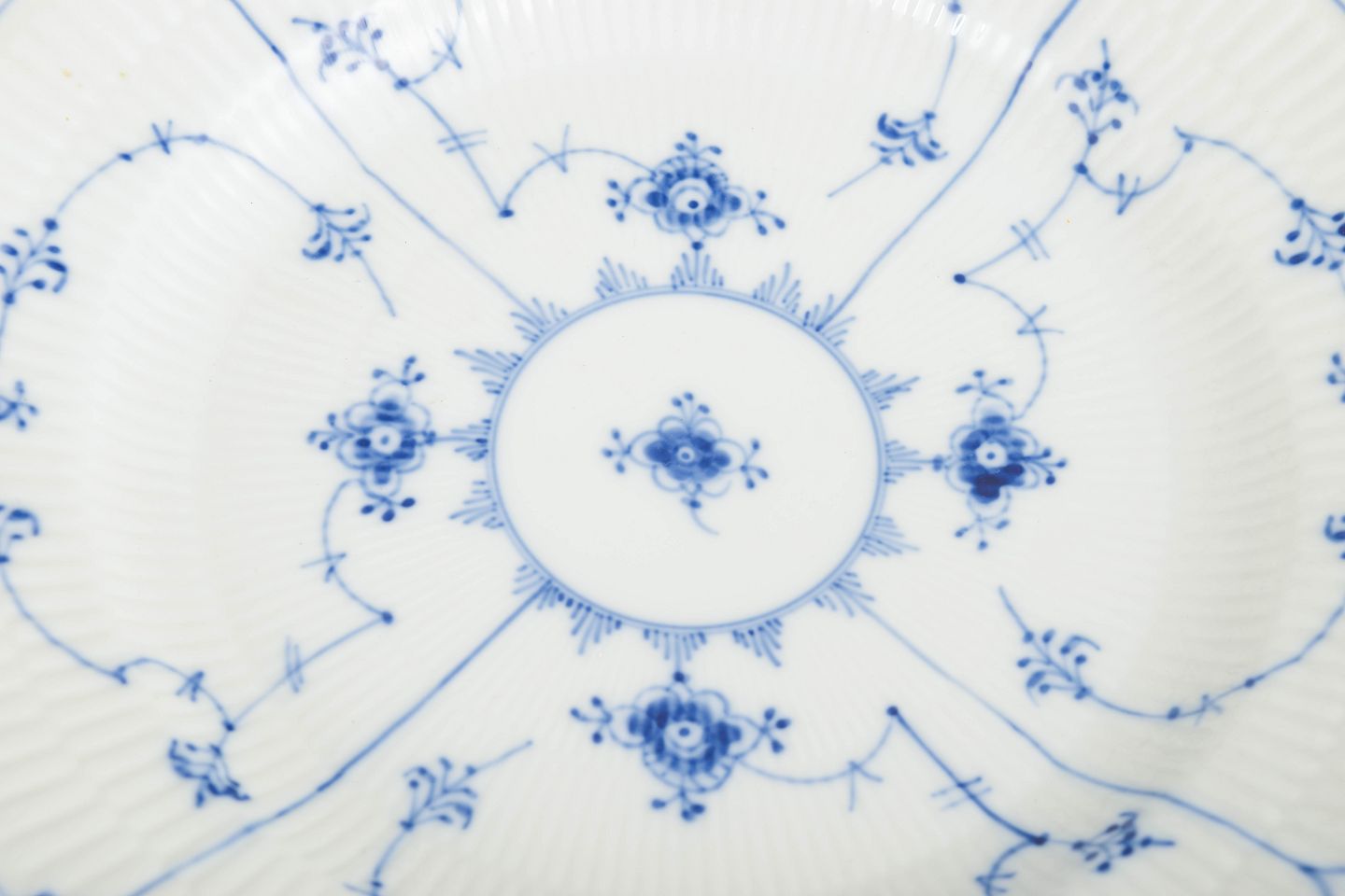 Royal Copenhagen Musselmalet Riflet, sæt af fire middagstallerkener.