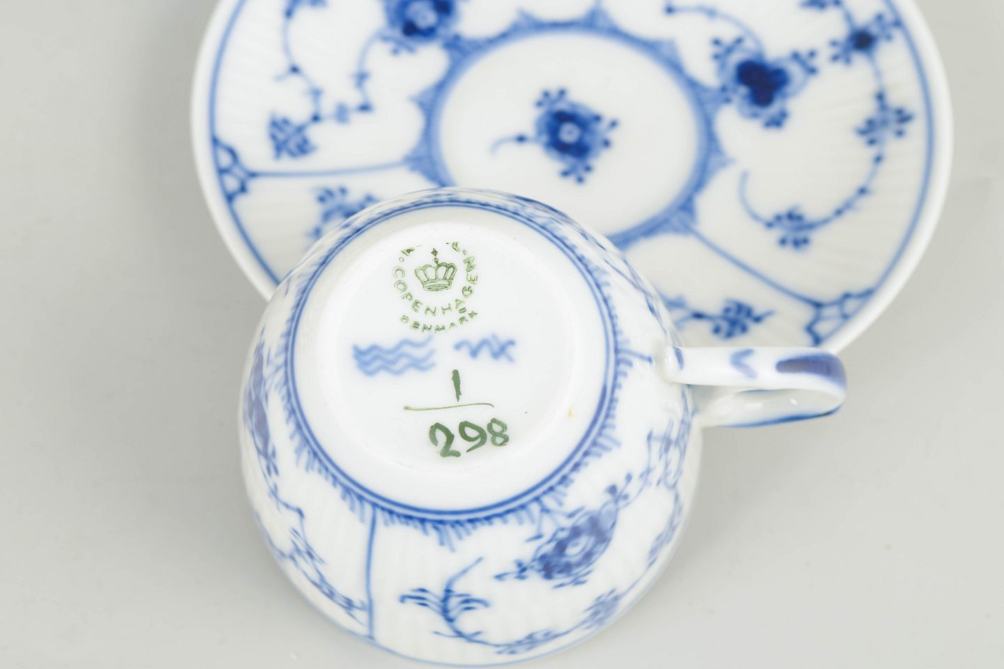 Royal Copenhagen blev grundlagt i 1775 i København under kongelig bevilling. Fabrikken er internationalt anerkendt for sit håndmalede porcelæn og sit høje kunstneriske niveau. Musselmalet Riflet er fabrikkens ældste stel, introduceret i 1775 og stadig produceret i dag, kendt for sin klassiske koboltblå dekoration og riflede form.