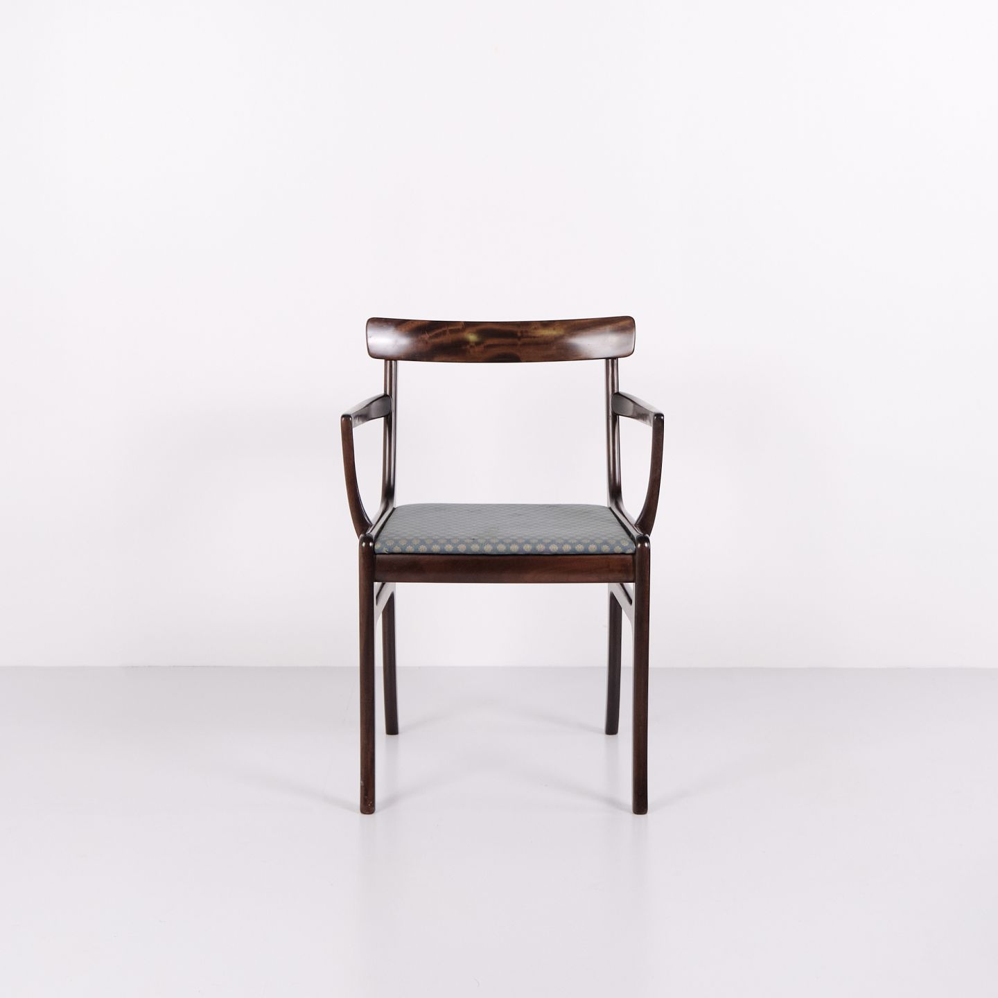 Armstol fra serien Rungstedlund formgivet af Ole Wanscher og produceret hos Poul Jeppesen Møbelfabrik i Danmark i 1950’erne. Stolen er udført i et klassisk og velafbalanceret formsprog, hvor proportioner og snedkerarbejde afspejler den danske designtradition fra midten af det 20. århundrede.
