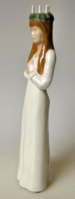 Royal Copenhagen Luciabrud med krone, No. 5273, Danmark. 20. årh. Bemalet porcelain. Stemplet. H: 22 cm.