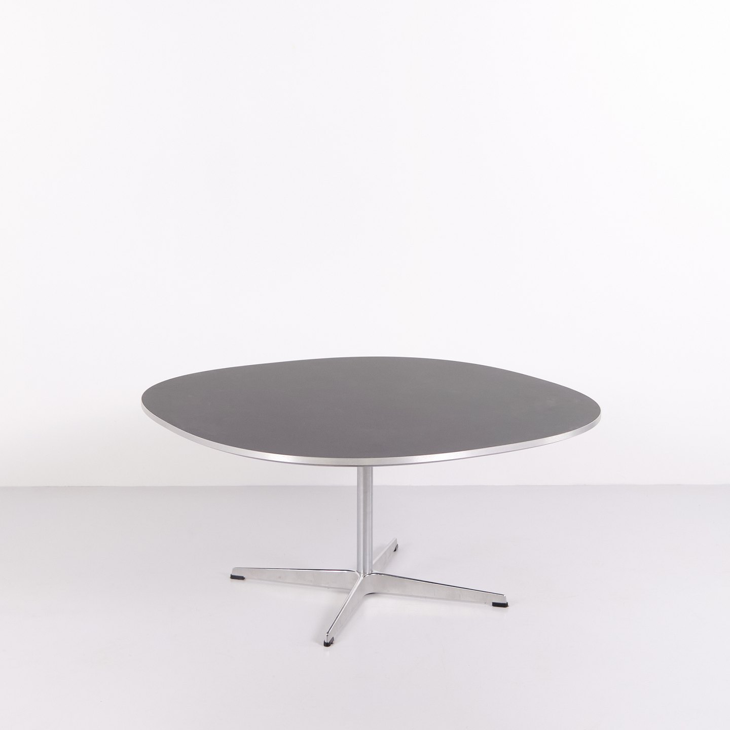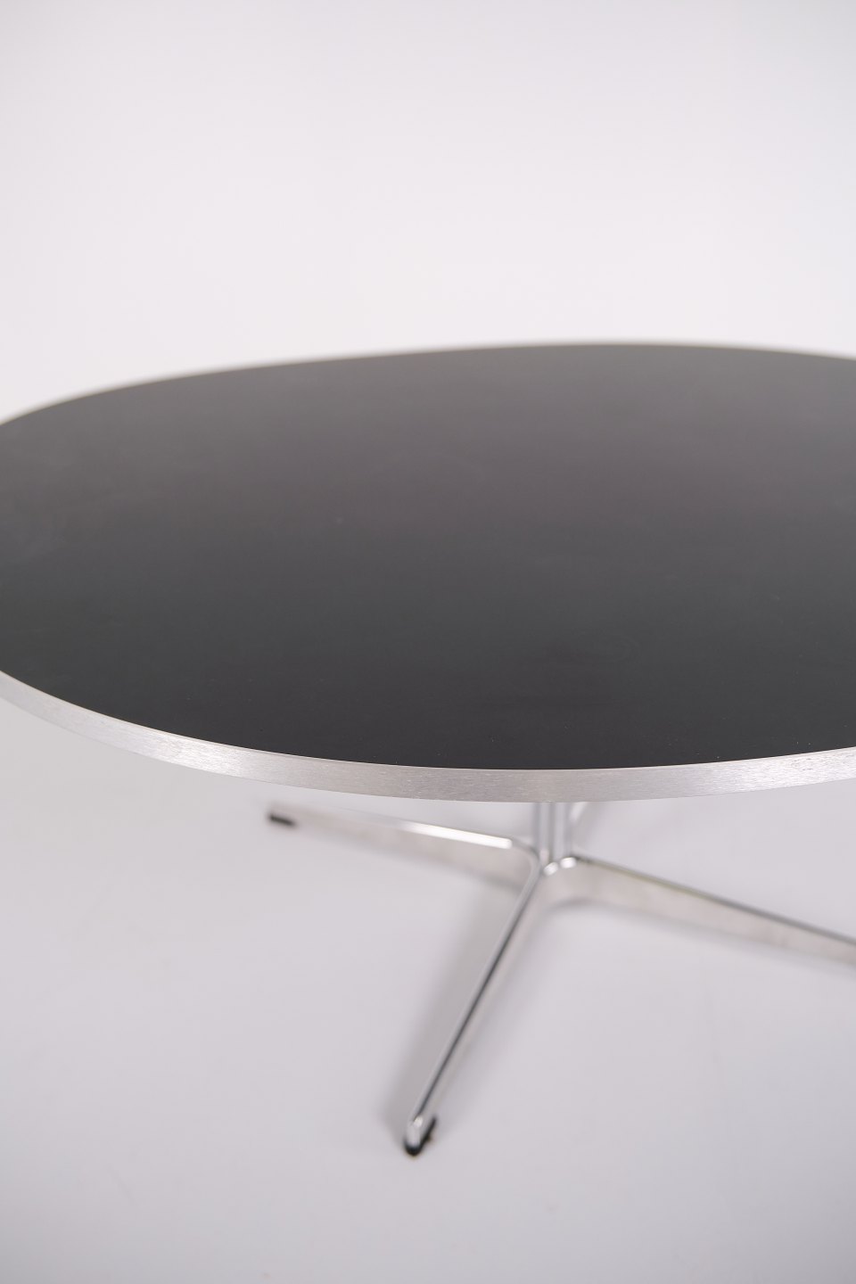 Arne Jacobsen Supercirkulært Sofabord Model A203 i sort laminat og Aluminium, Fritz Hansen 1968