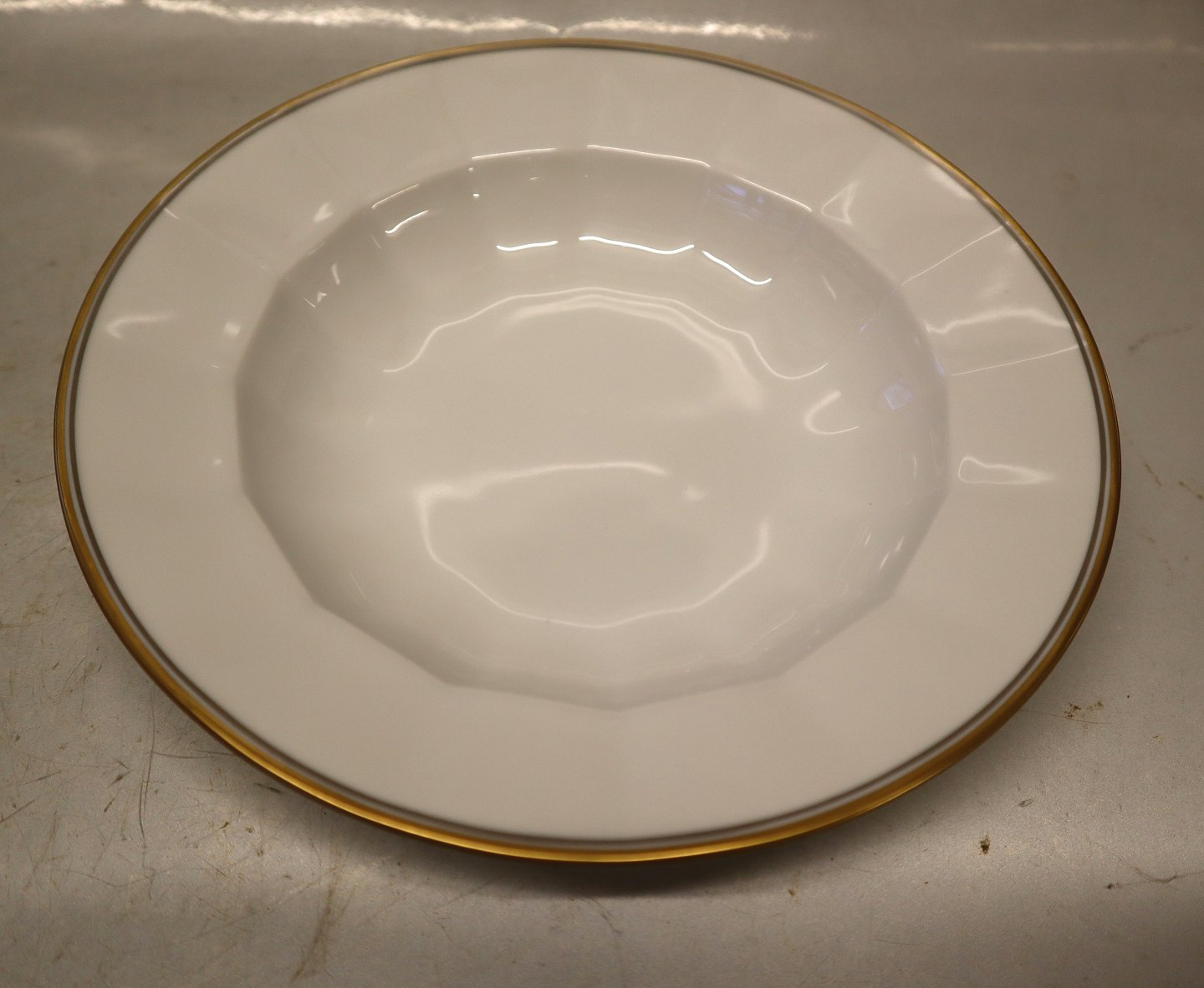 8547-1535 Small rim soup plate ca 21,2 cm (604) gold & grey lines Royal Copenhagen Palace (Palads) Angular. In mint and nice used condition