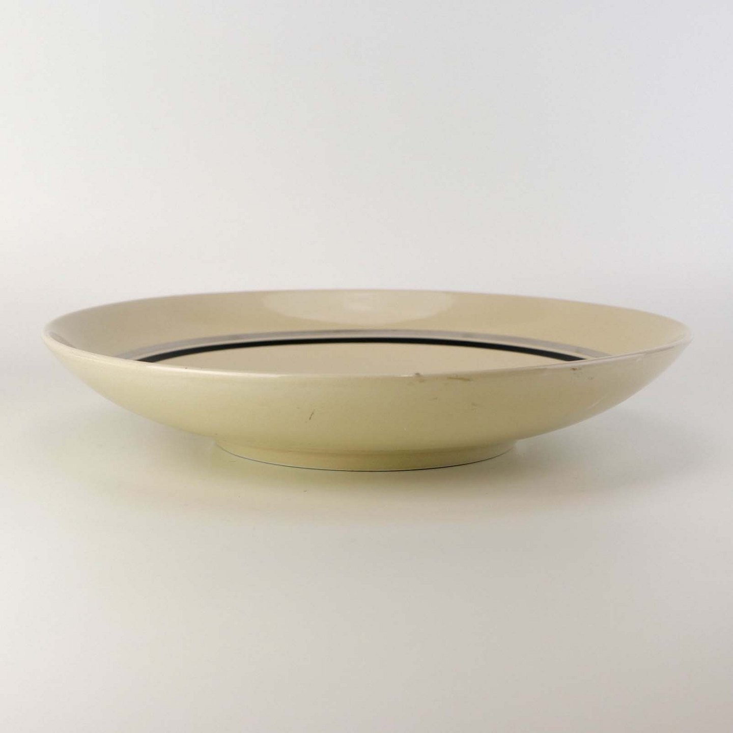 Rundt kagefad i fajance fra stellet Dragsholm fremstillet i perioden 1934-1965. Nr 256