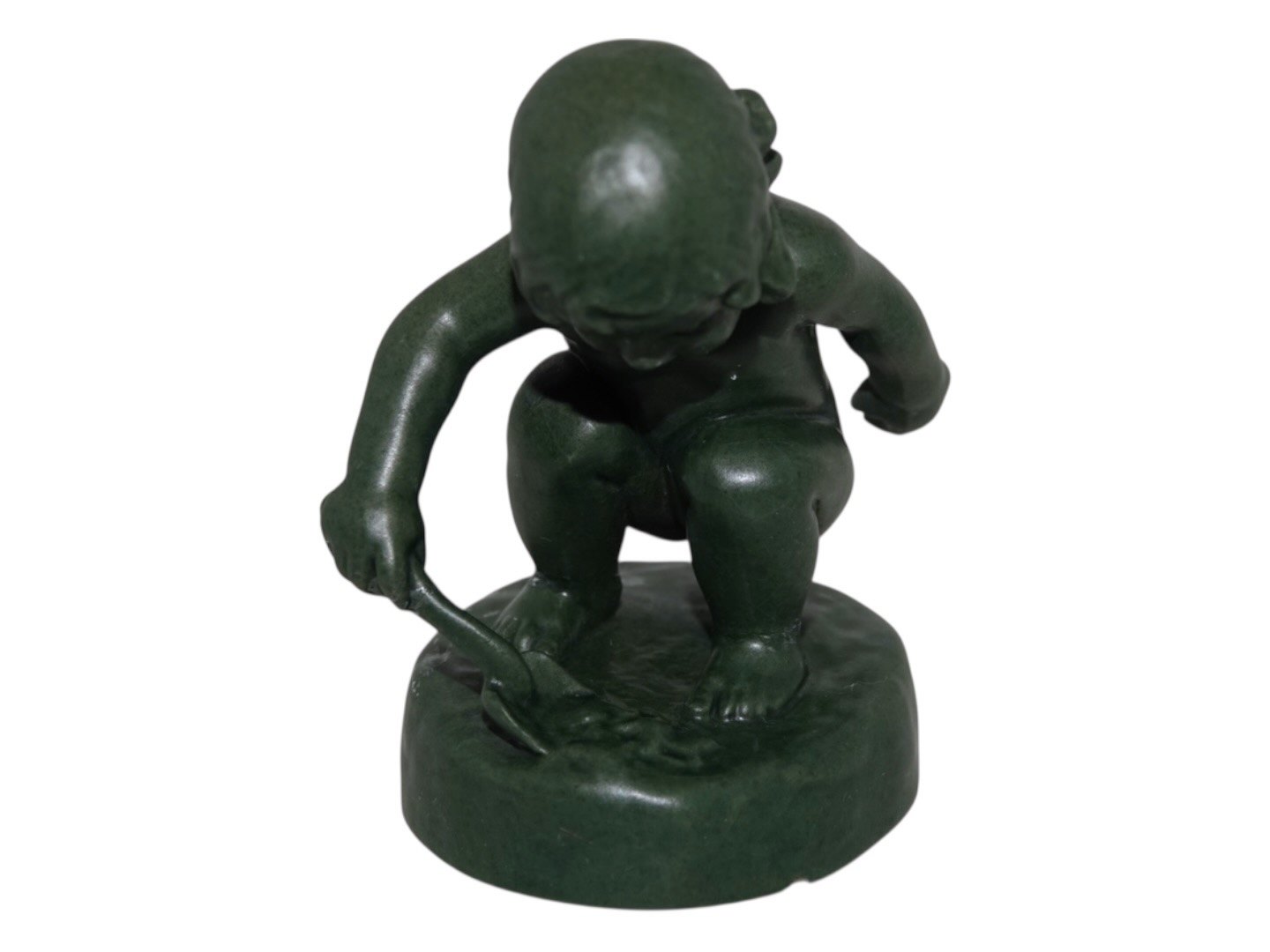 Ipsen keramik med grøn glasur. Figur af pige med sandskovl.