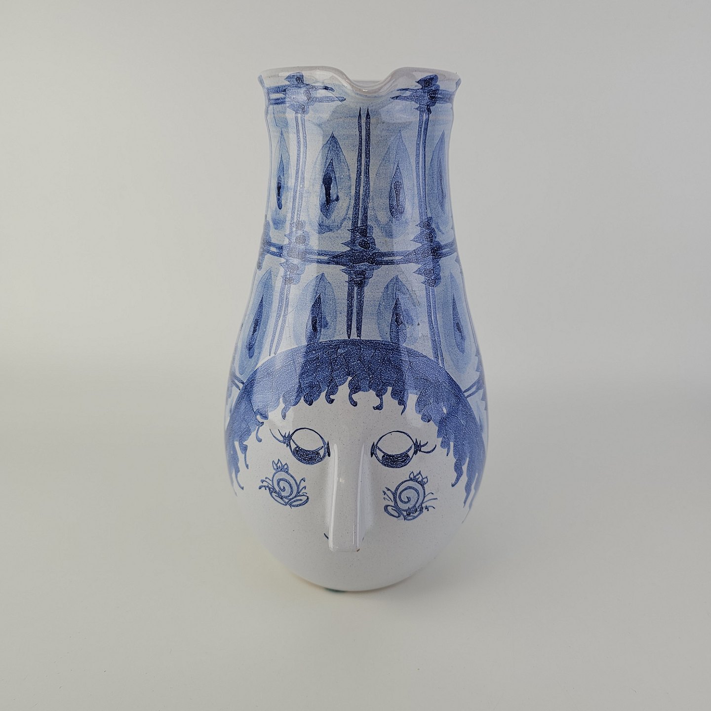 Håndmalet kande af porcelæn med motiv af et kvindehoved