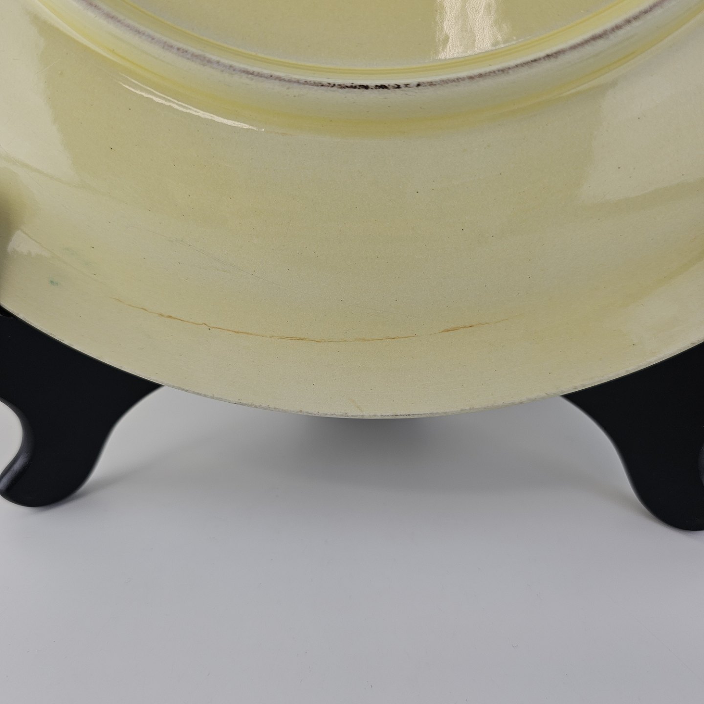 Rundt fladt fad i fajance fra stellet Gertrud fremstillet i perioden 1933-1939.