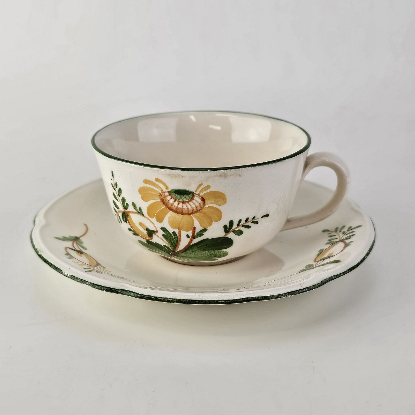 Kaffekop med underkop i fajance fra stellet Maj fremstillet i perioden 1941-1966.
