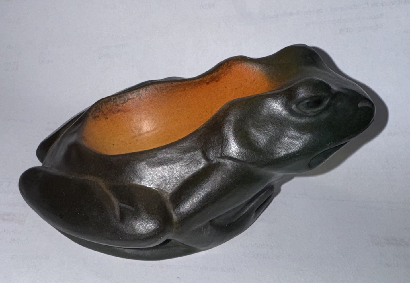 Figur af frø i keramik som pibeholder fra Peter Ipsens Enke. Fremstår i god stand. Ingen skader eller reparationer. Fabriksmærket på bunden. Mål: H. 5,7 cm dybde 10,5 cm bredde 8,3 cm. Piben på foto følger ikke med !
