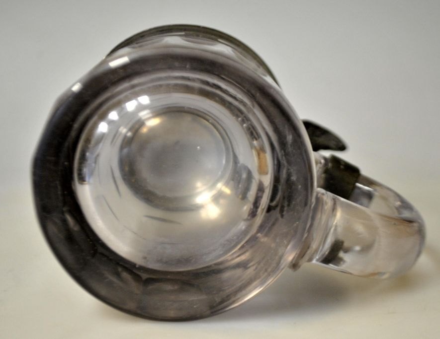 Tysk ølkrus, 1891 i glas med tinlåg. Ælkruset med slibninger. Låg af tin med dekoration af Germania og jernkorset fra 1870/1871. Gæk i form af ørn. På låg indgravering: Peter Asmussen 22 juli1891. Højde.: 15 cm.