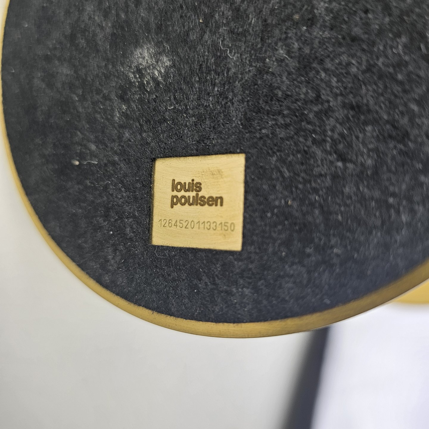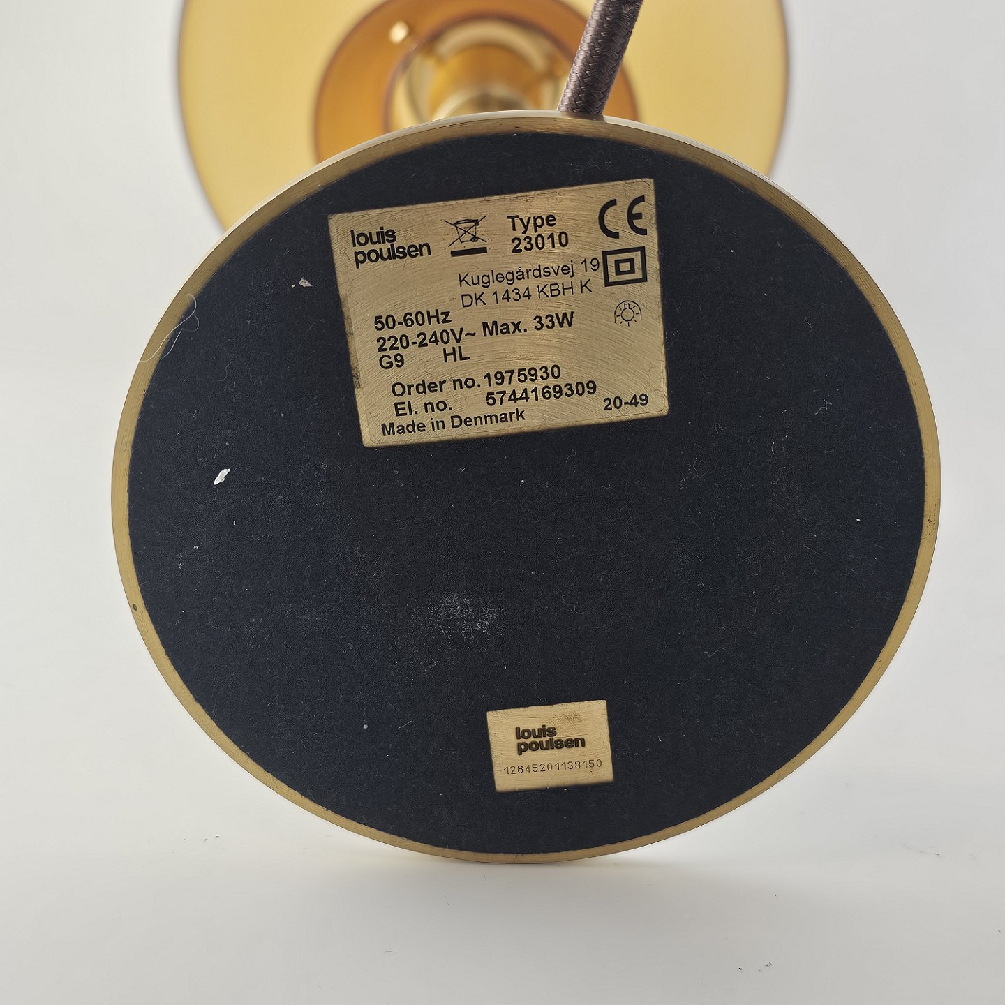 Bordlampe PH 3/2 med skærm af mundblæst ravfarvet etlagsglas og fod af strøgslebet messing