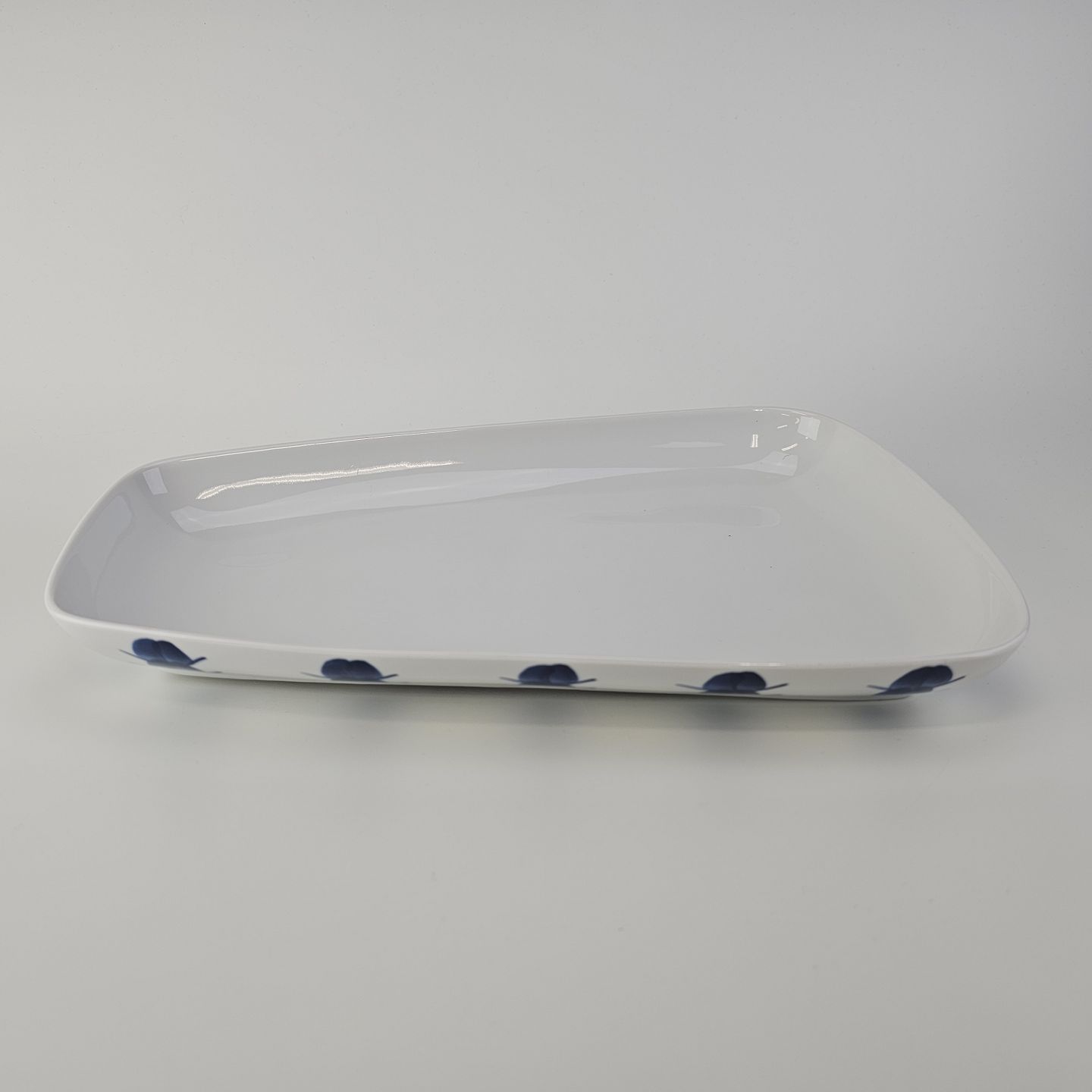 Asymmetrisk aflangt fad i porcelæn fra Stellet Danild 30, også kaldet Blomsterknop