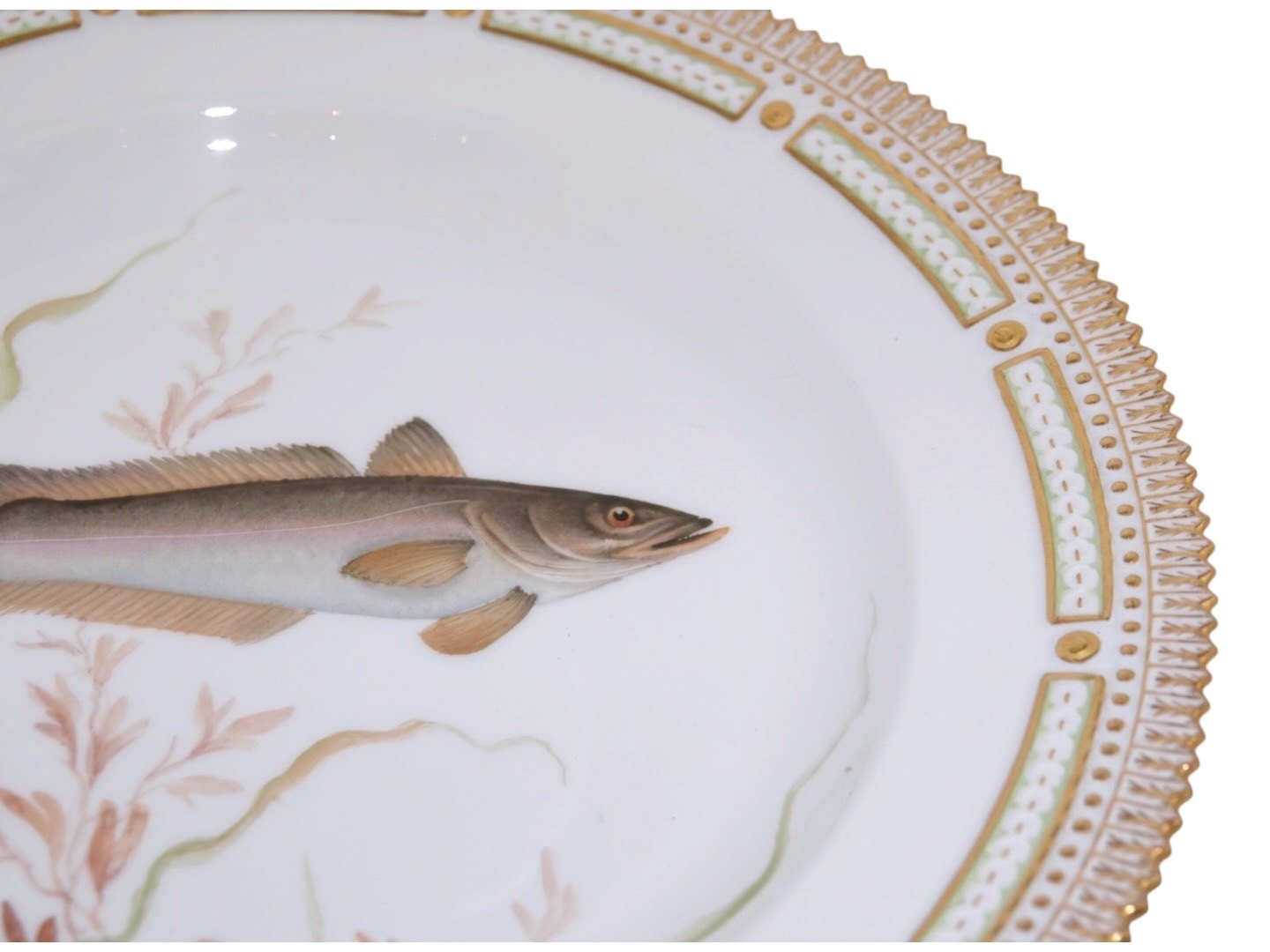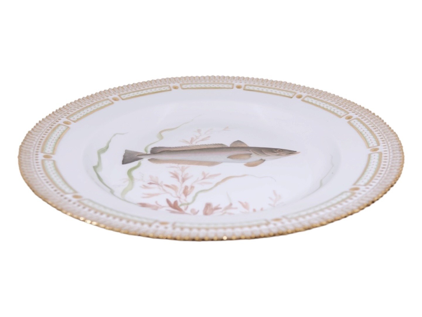 Royal Copenhagen Flora Danica, dinner plate decorated with a fish.