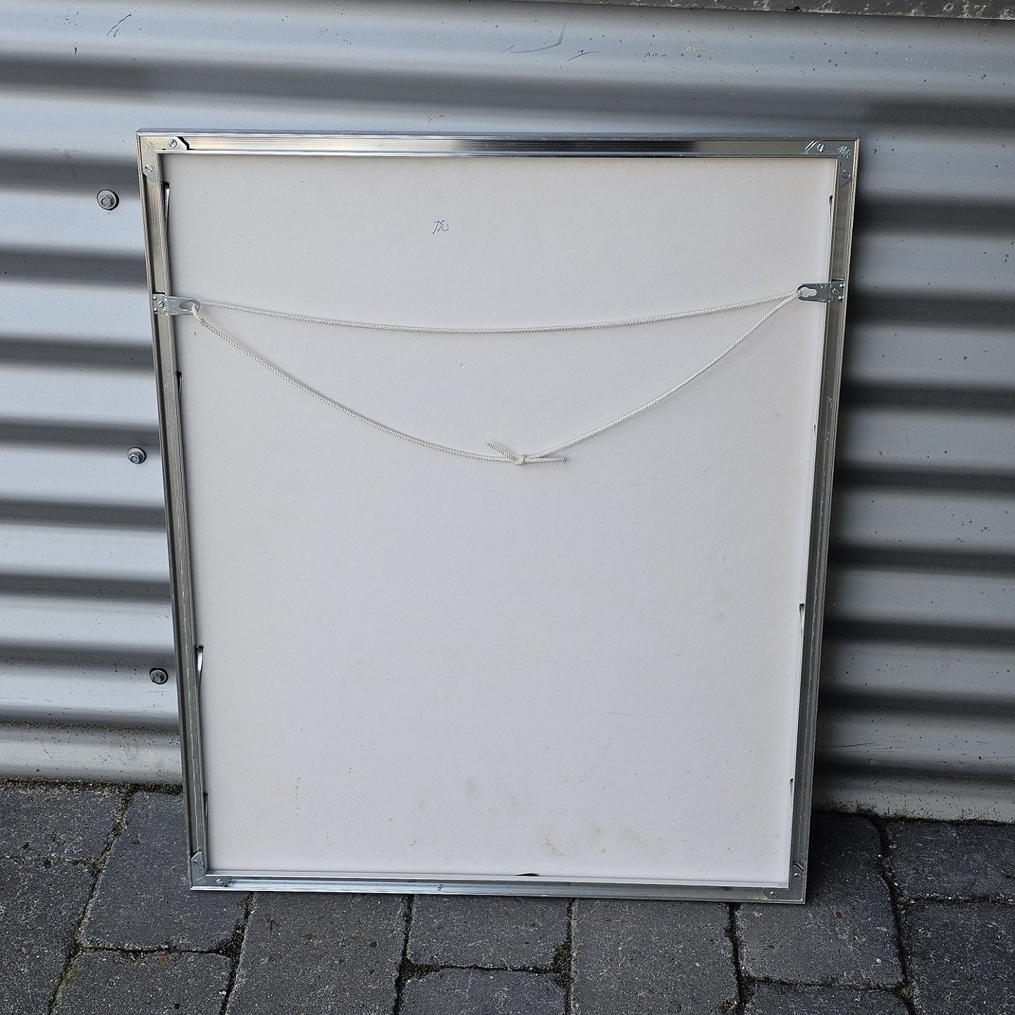 Litografi i rød og mørkeblå i metal ramme. 13/45