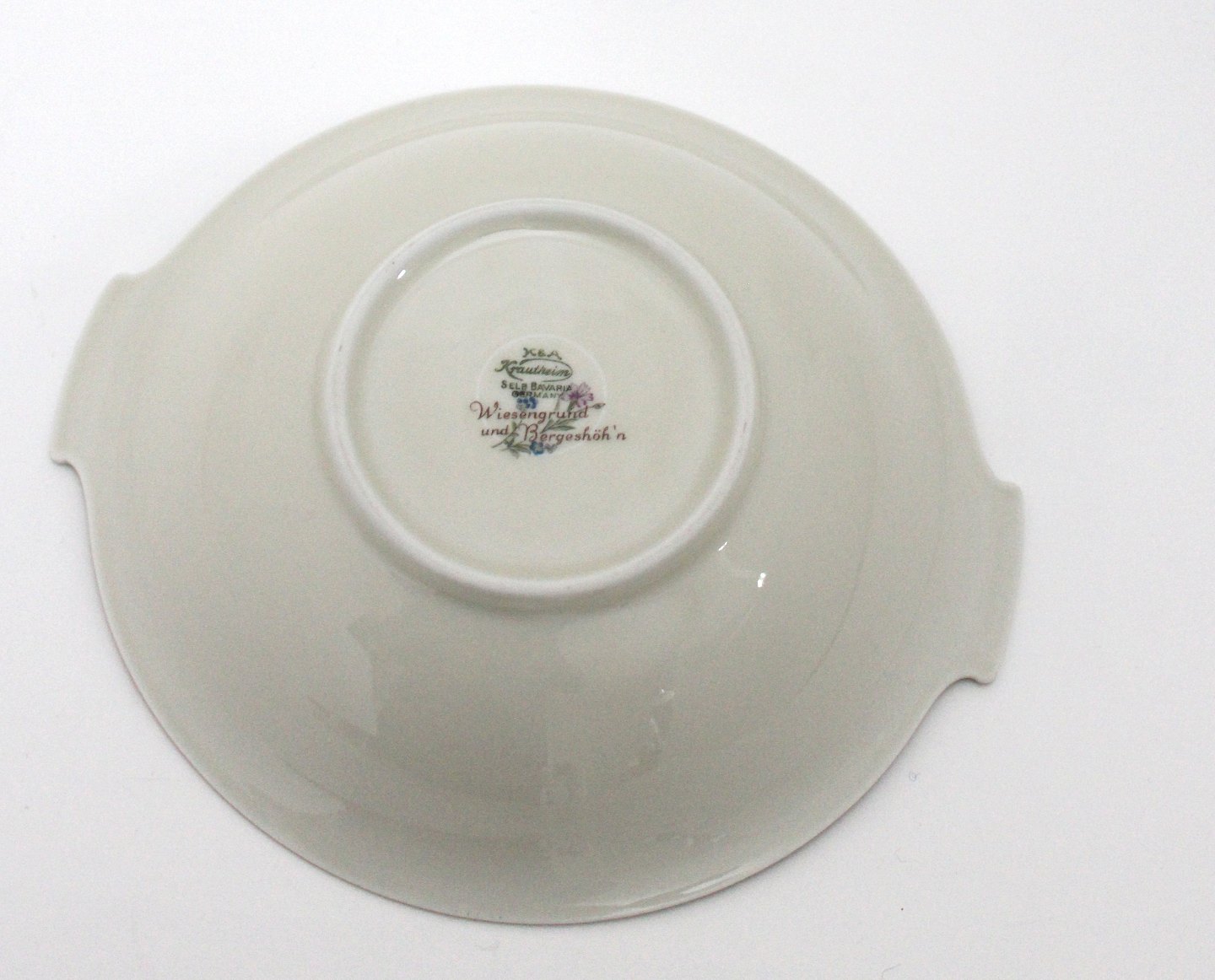 Skål med ører, motiv lilla stedmoderblomst m.fl. Diameter 18 cm. Længde 20 cm. Højde 5 cm. Pris: 175 kr. stk. Lager: 1