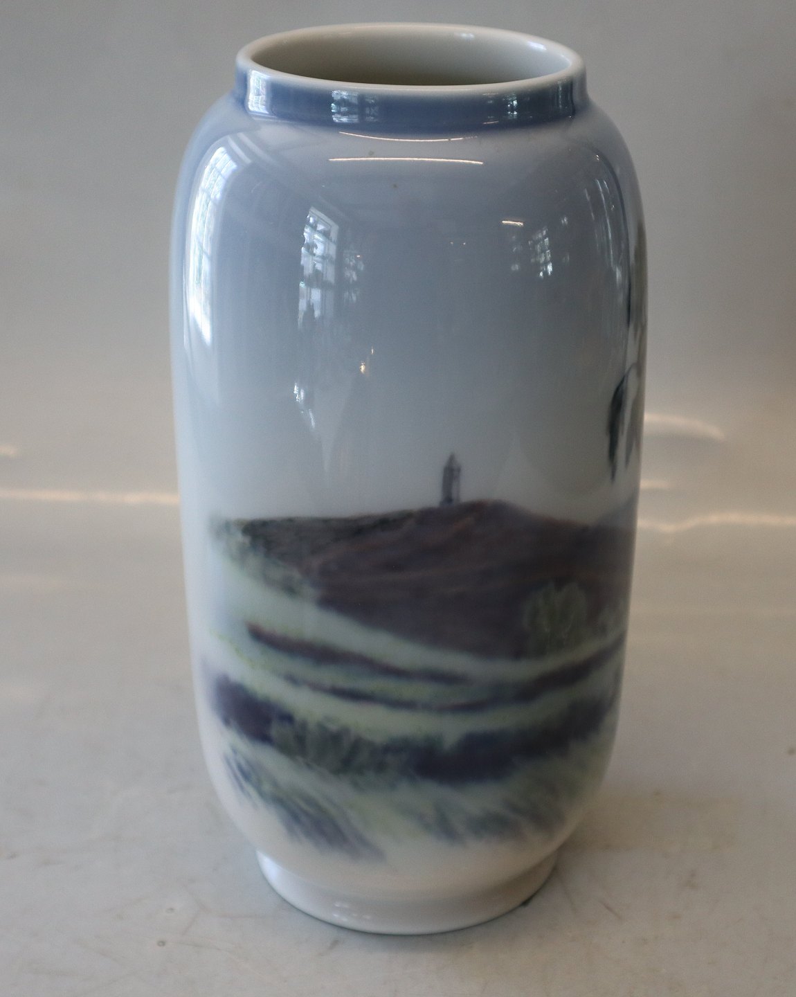 2889-107 Kgl. Vase med tårnet "Himmelbjerget" Silkeborg 21 cm Porcelæn fra Royal Copenhagen I hel og fin stand