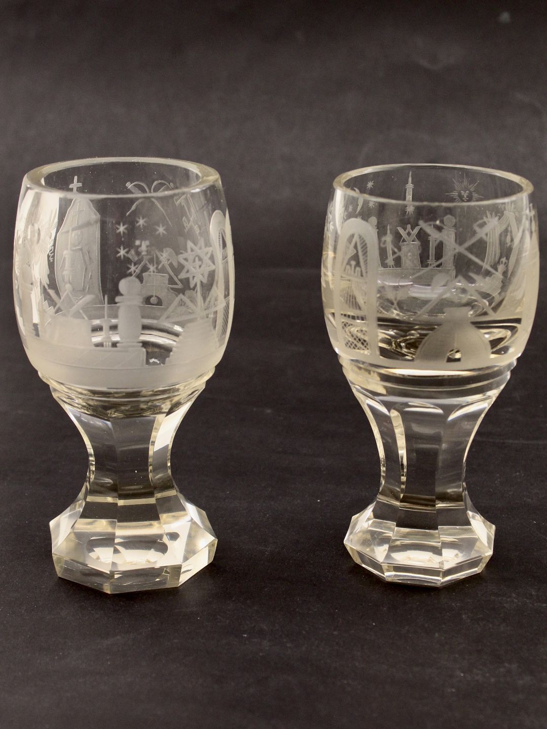 Frimurer glas med mange symboler H.15,5 cm. emne nr. 635461