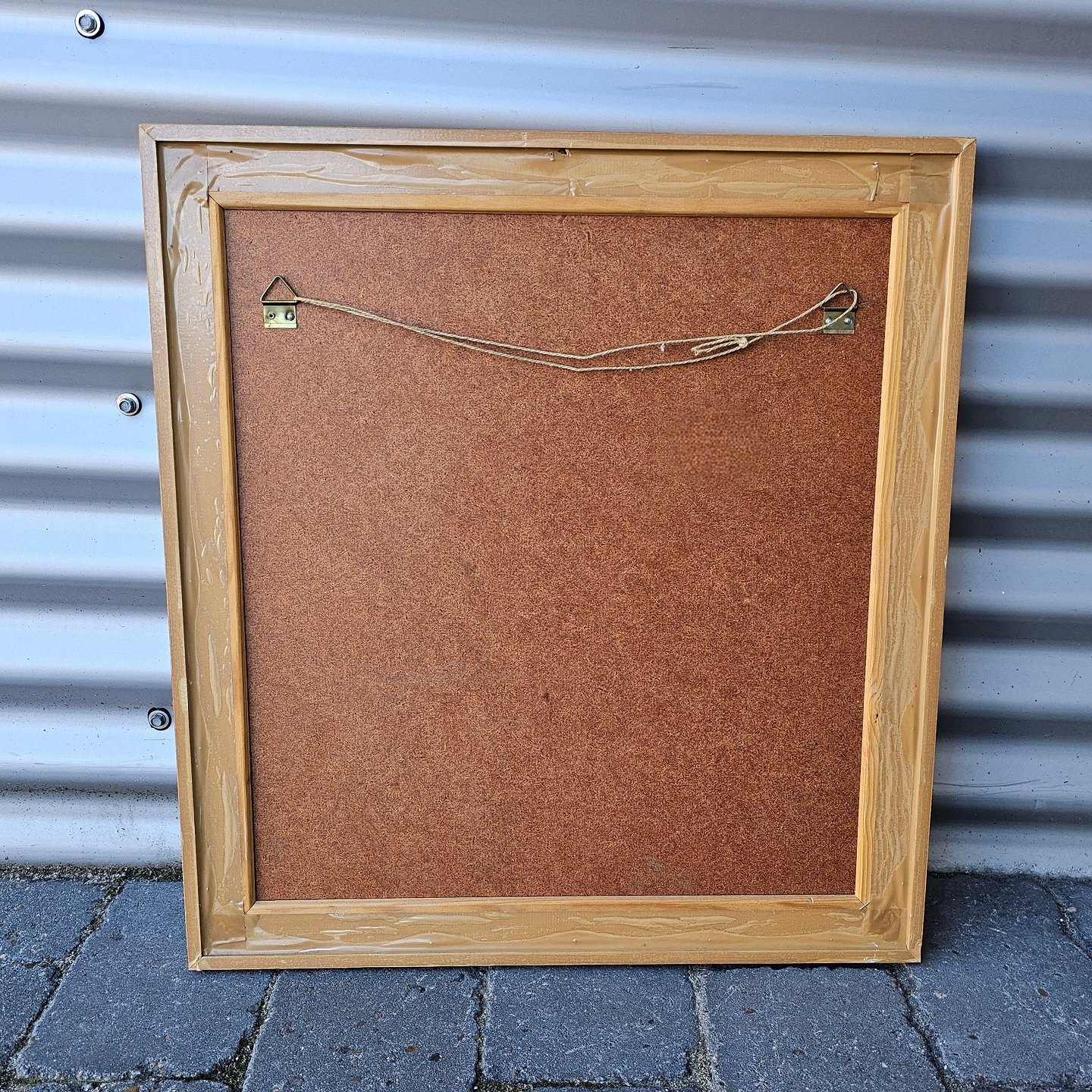 Prøvetryk med titlen "Sådan bygger vi" med motiv af to fugle der bygger rede. Monteret i træramme