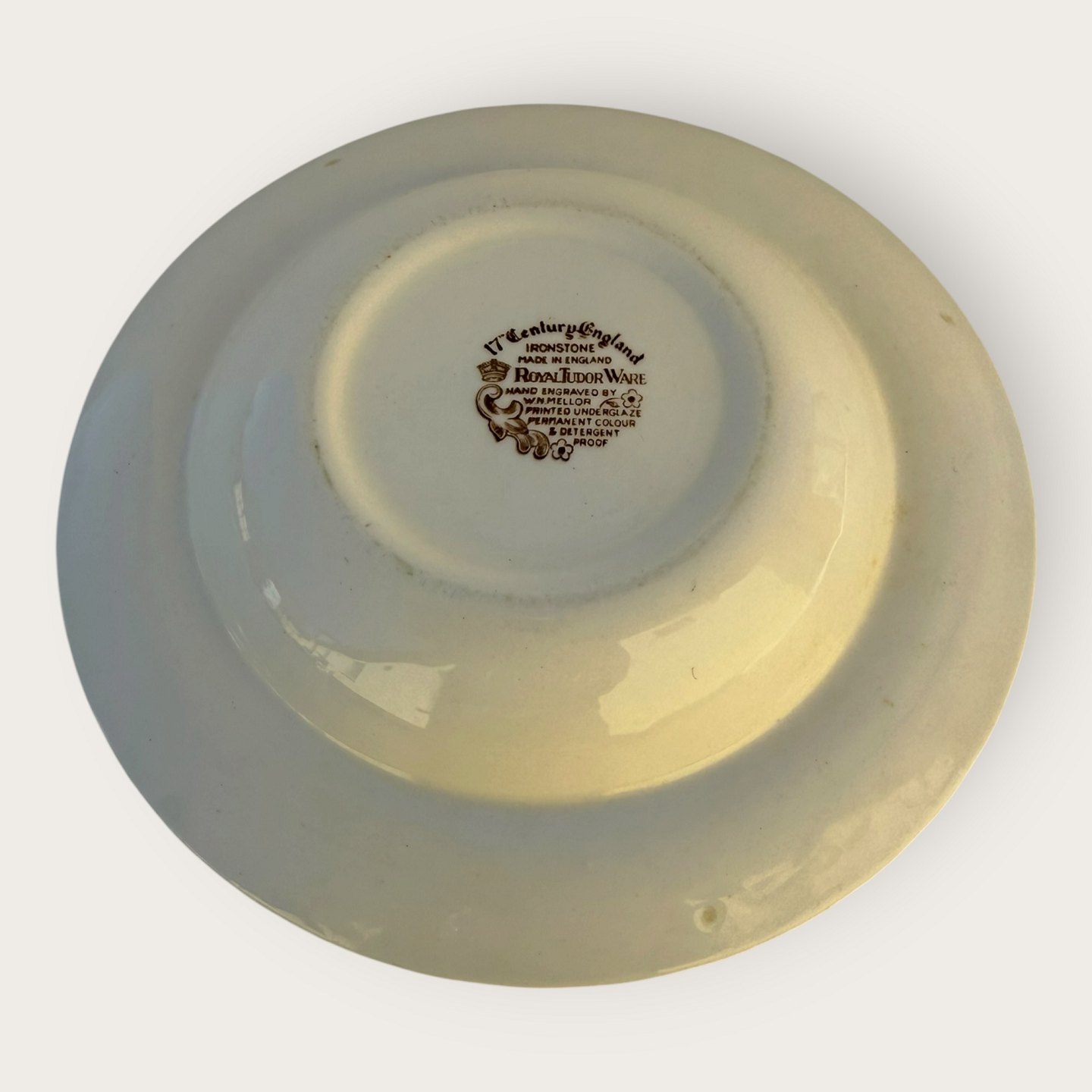 Royal Tudor Ware, 17'' century England, dyb tallerken, diameter 22cm *pæn stand*
