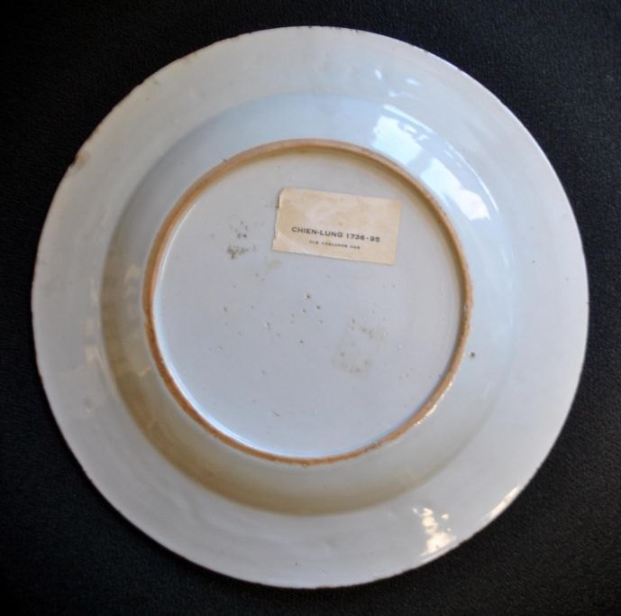 Kinesisk blå/hvid tallerken, 18. årh. Chien-Lung.