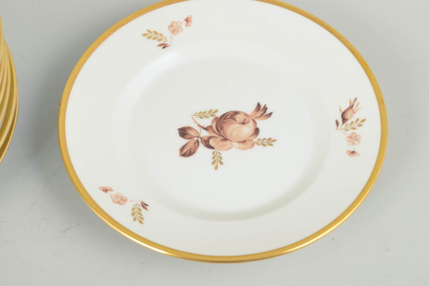 Royal Copenhagen brun rose, sæt af elleve tallerkener.