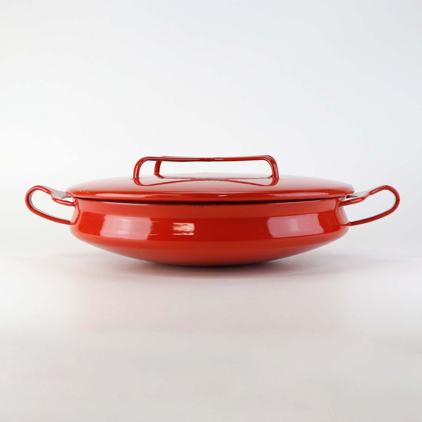 Kasserolle med låg fra serien Kobenstyle fremstillet i metal og belagt i rød og hvid emalje. Model France