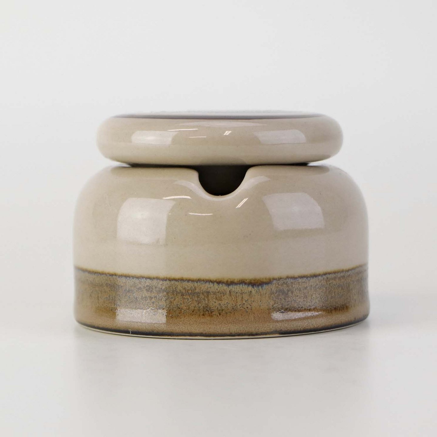 Stellet Peru er af stentøj, glaseret med lys sandfarve og dekoreret med bånd af grøn/brunlige farve