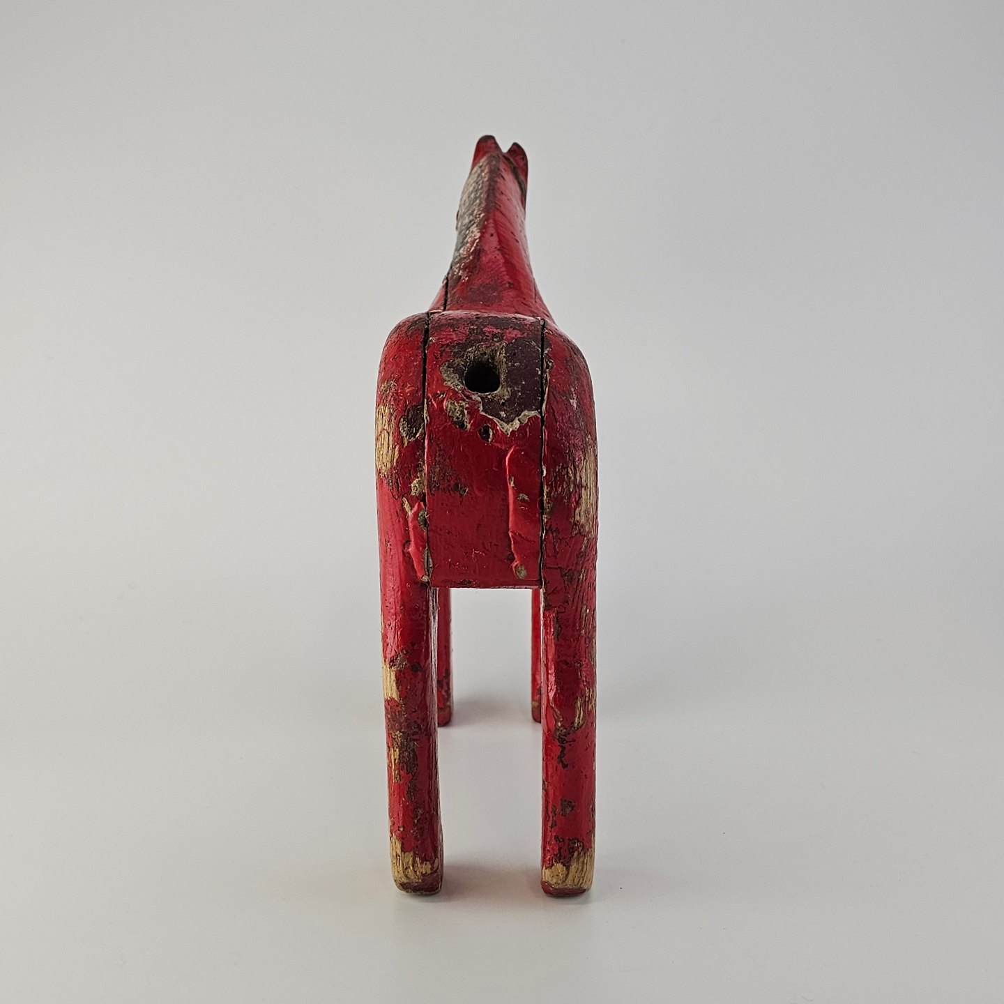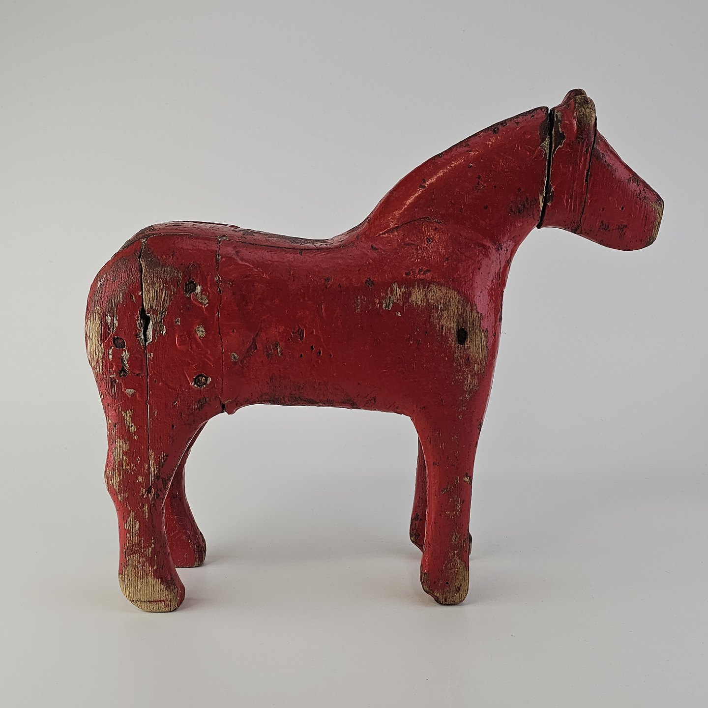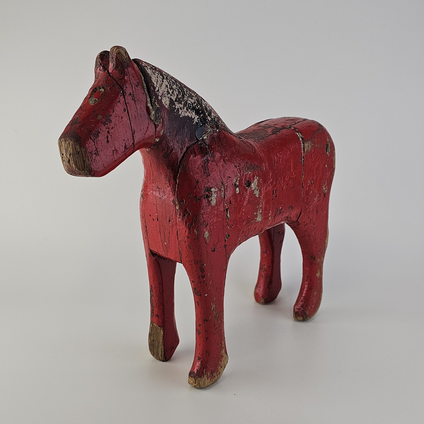 Håndsnittet hest i rødmalet træ