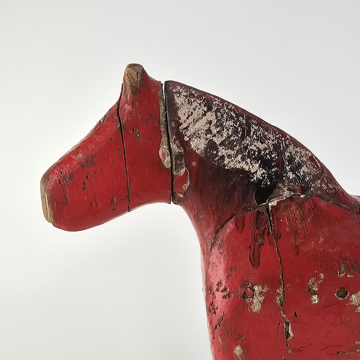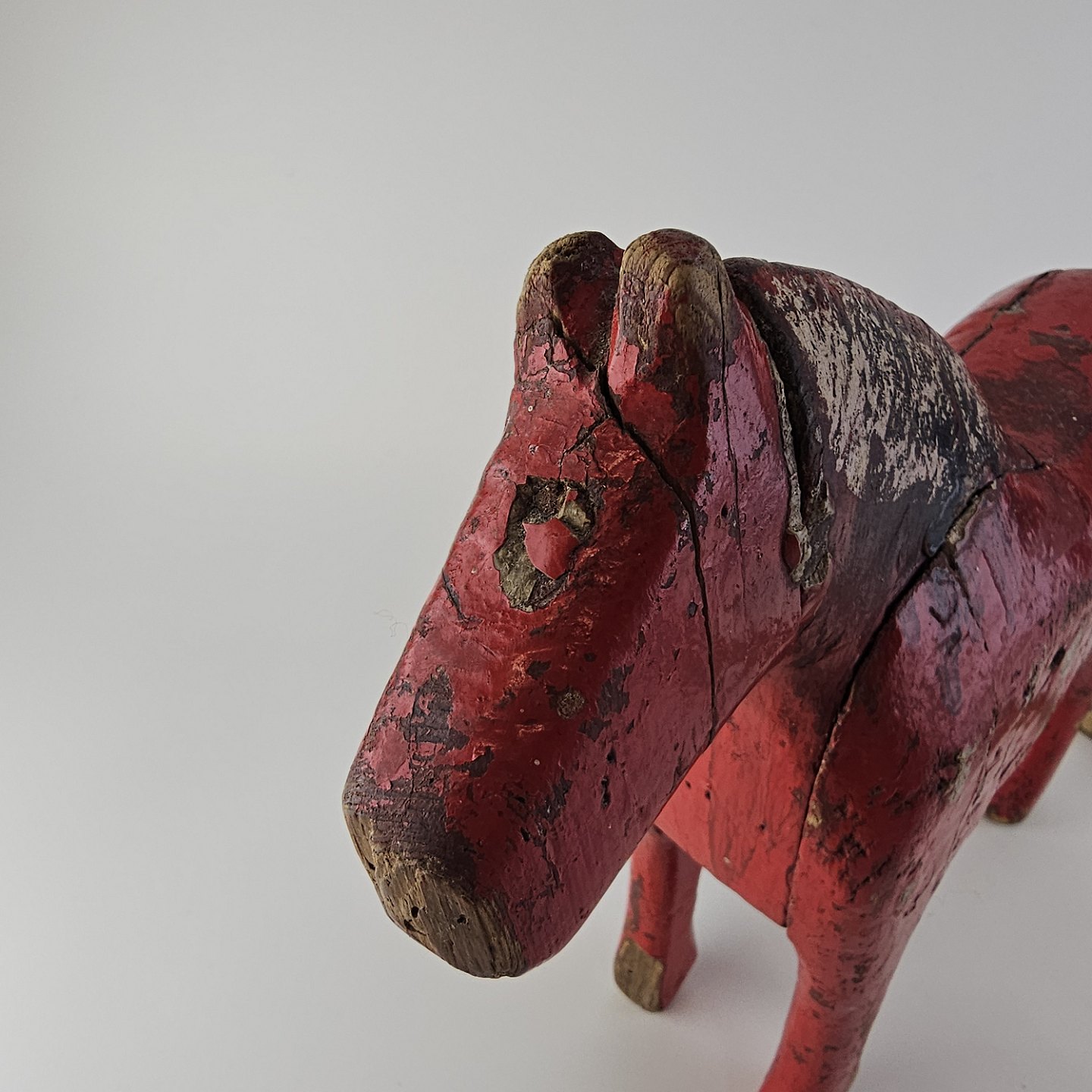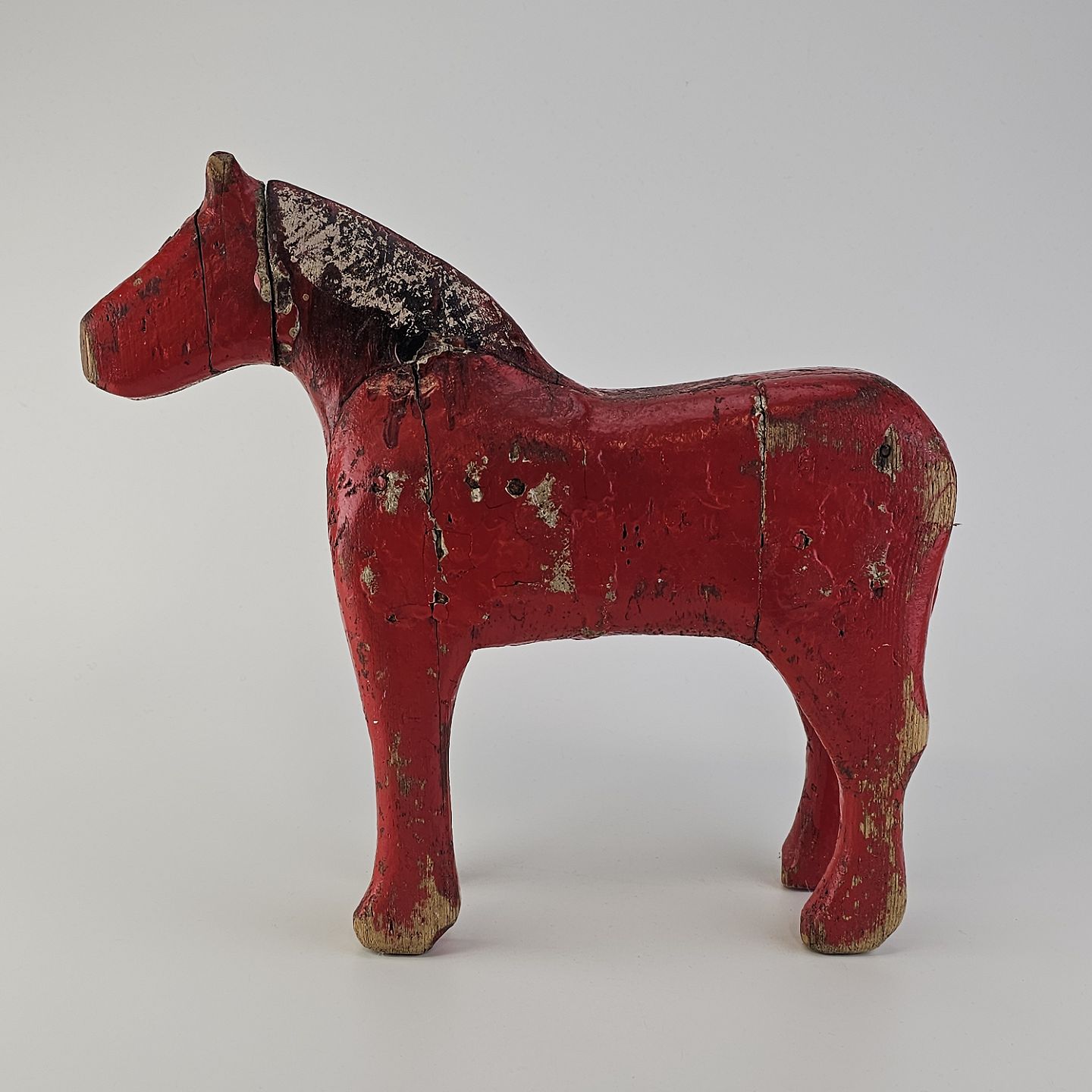 Håndsnittet hest i rødmalet træ
