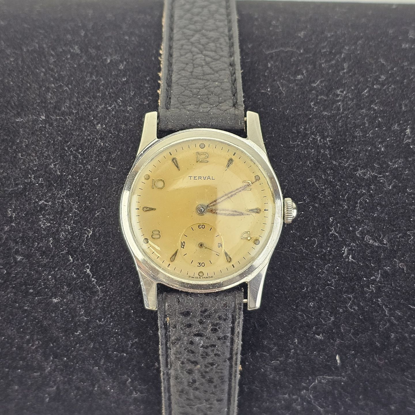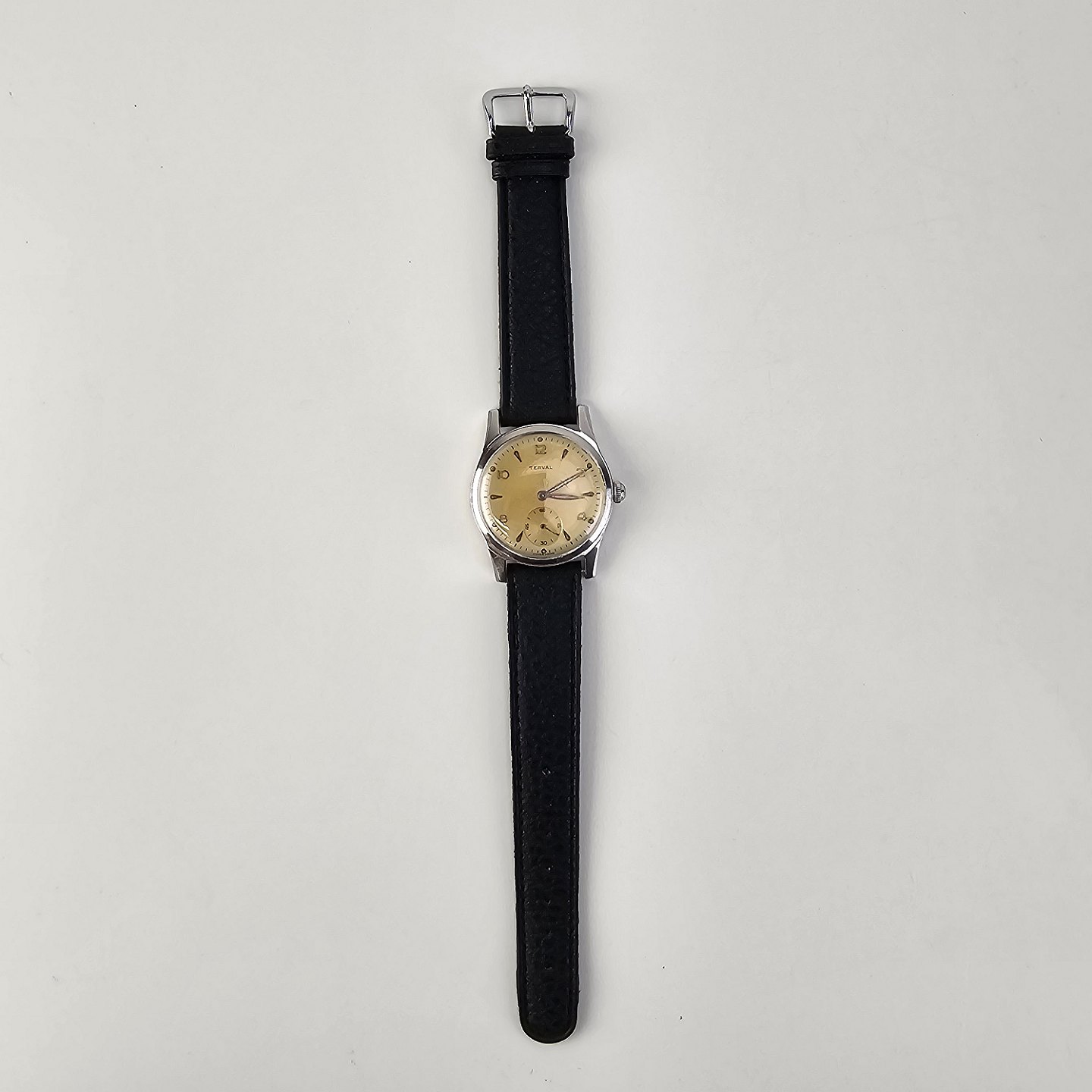 Armbåndsur med læderrem, stemplet med serienummer 425982