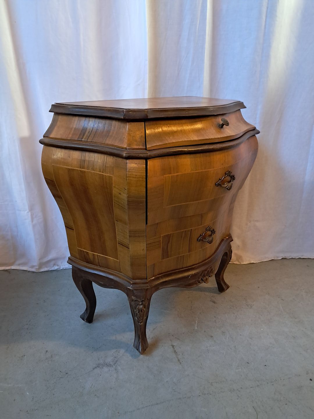 Rokoko kommode i fineret nødetræ, fra 1980erne.
