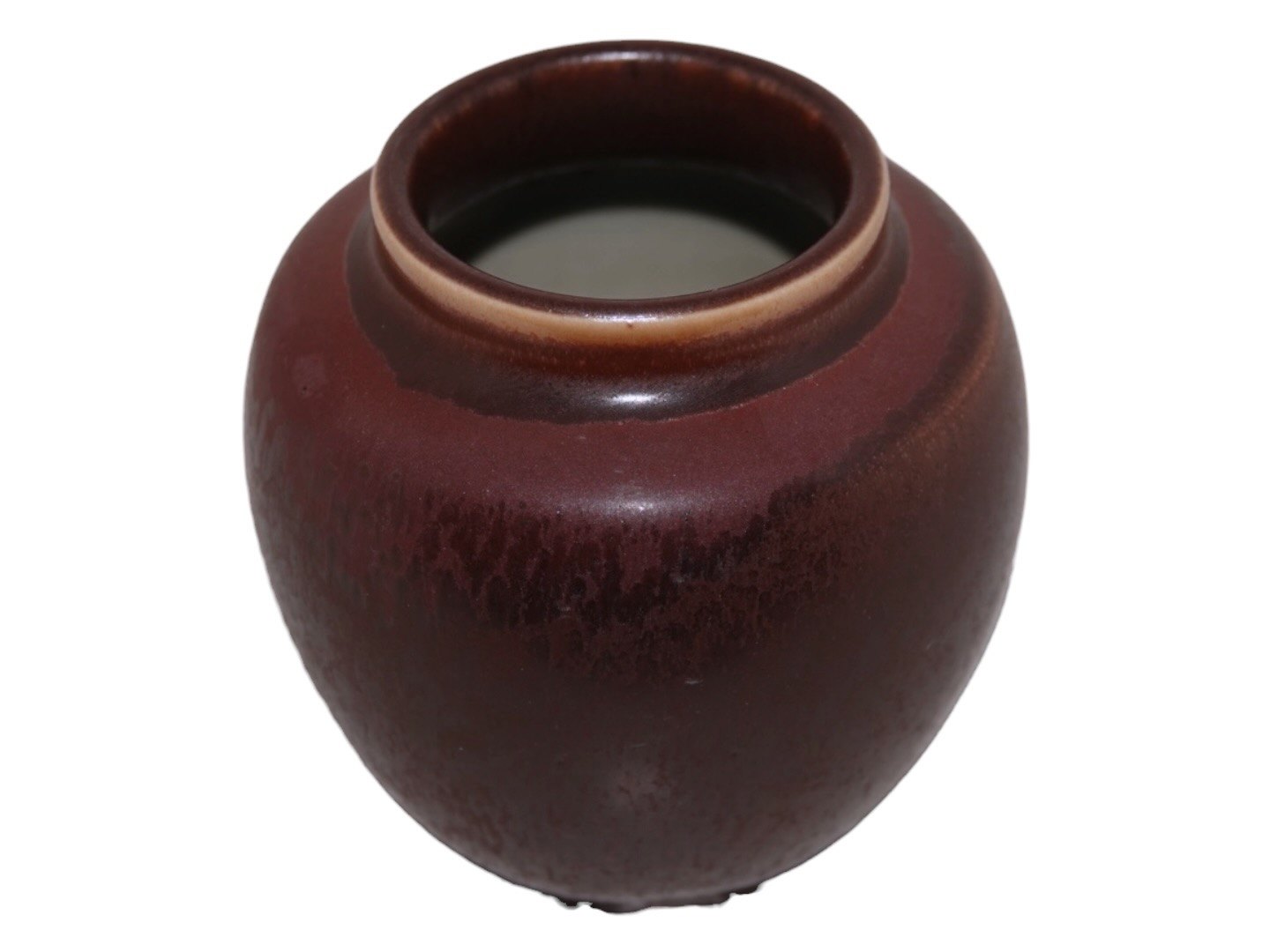 Lille vase med rødbrun glasur