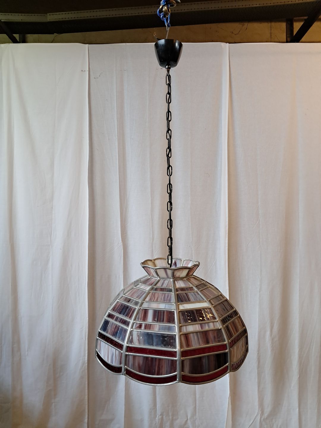 Tiffany loftlampe i glas og metal, fra 1980erne.