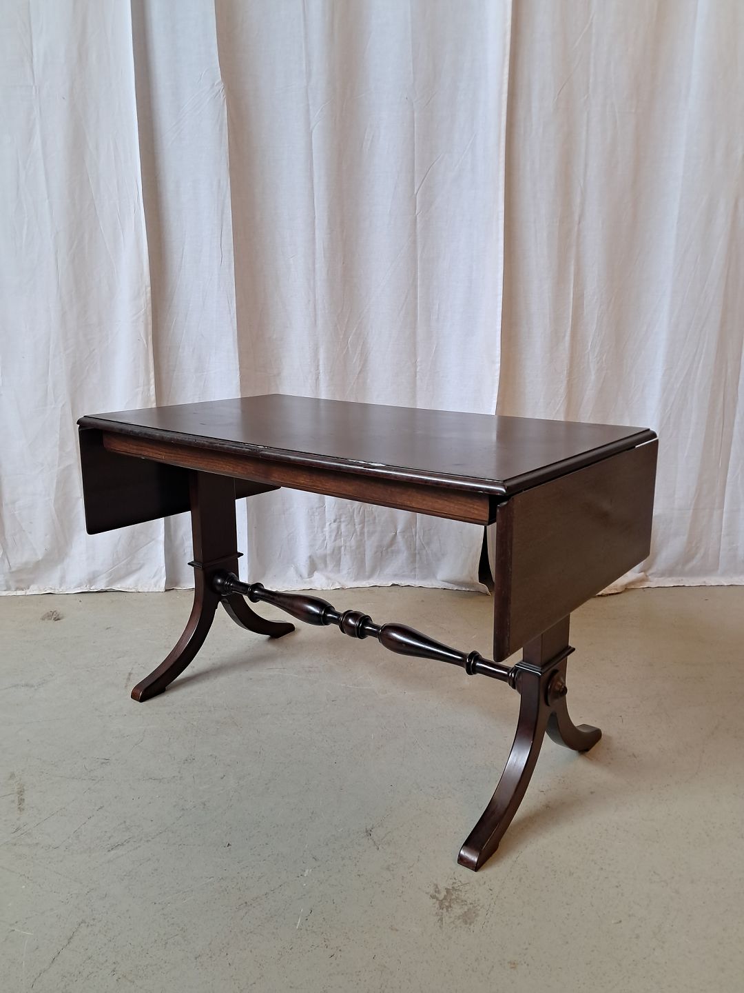 Sofabord i fineret mahogni, fra 1980erne.